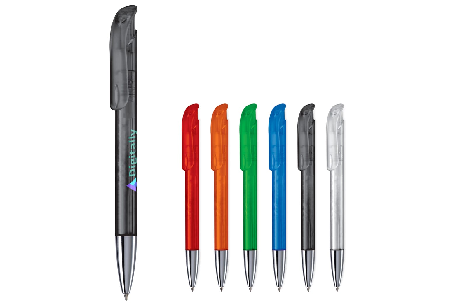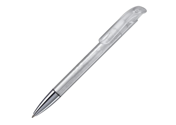Toppoint design balpen, geproduceerd in Duitsland. Deze pen bevat een blauwschrijvende Jumbo vulling voor 4,5km schrijfplezier. Het is een transparante pen met een metalen tip.