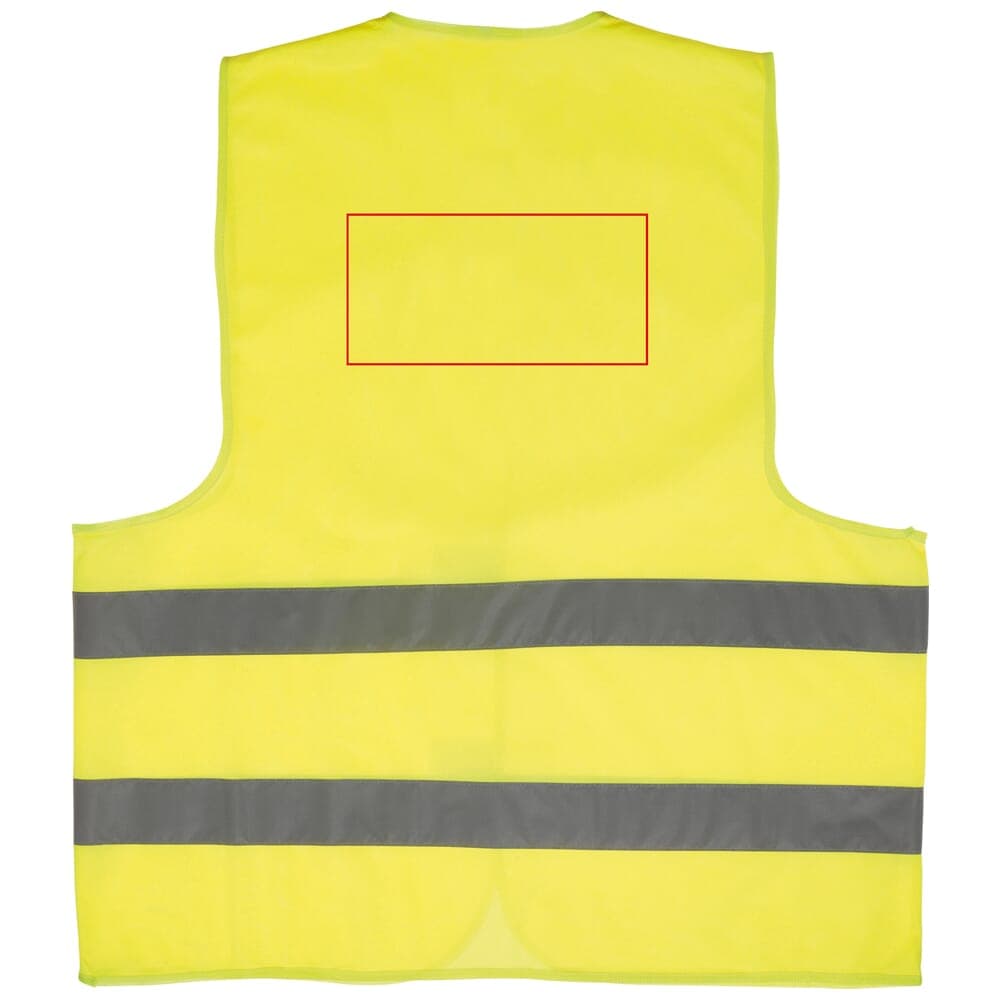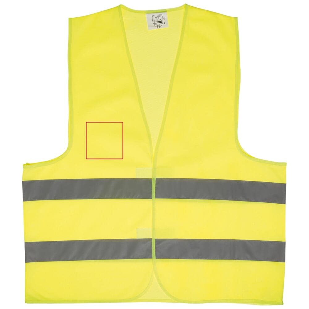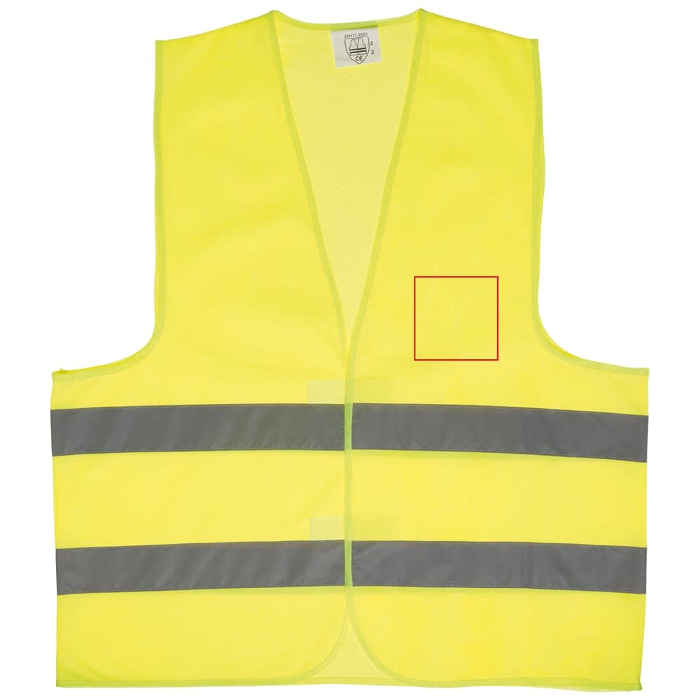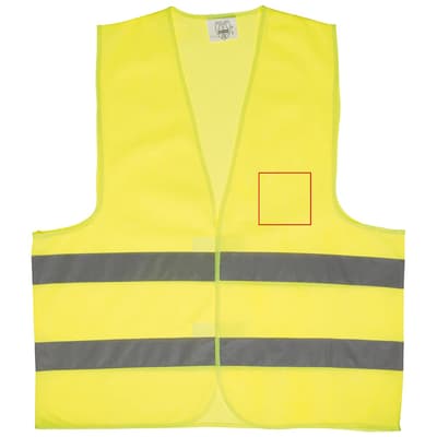 Geel veiligheidsvest voor volwassenen met twee reflecterende strepen en klittenbandsluiting. Gemaakt van stevig maar licht polyester waardoor het hesje comfortabel draagt. Voldoet aan de Europese EN20471 norm, klasse 2/2. Verplicht in de meeste Europese landen. Past in de safety opberghoes 90934.