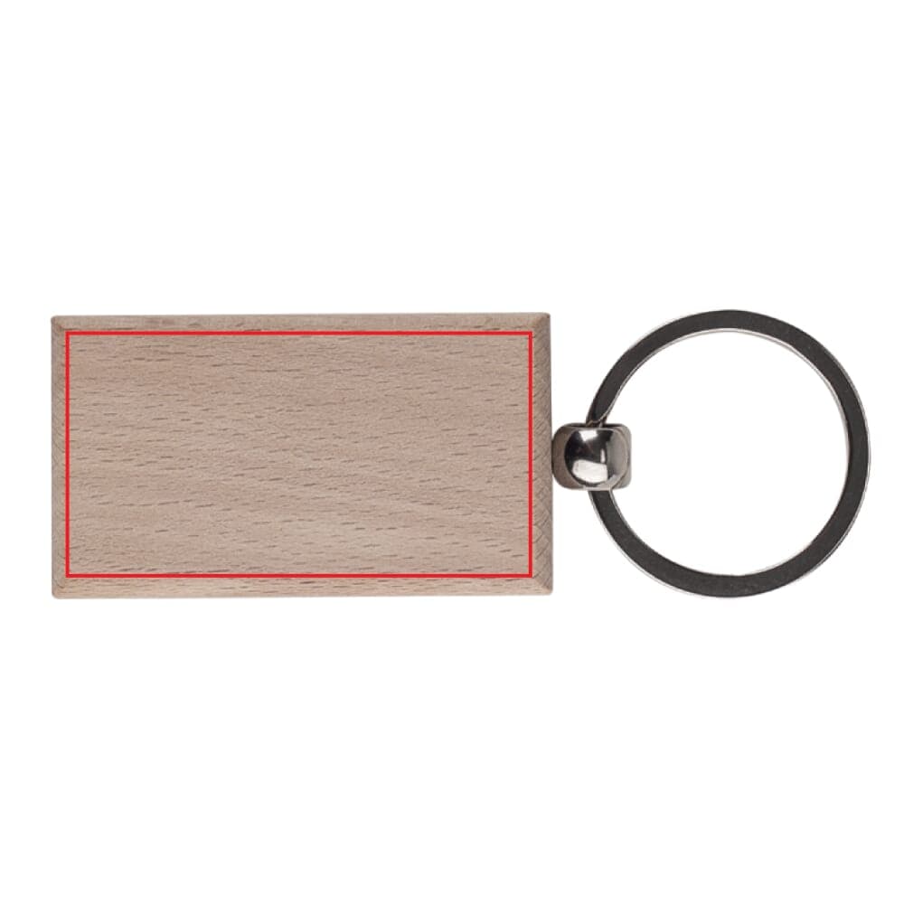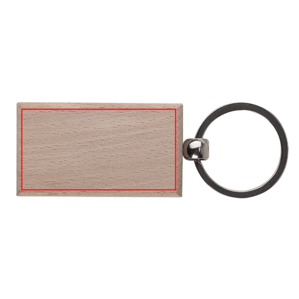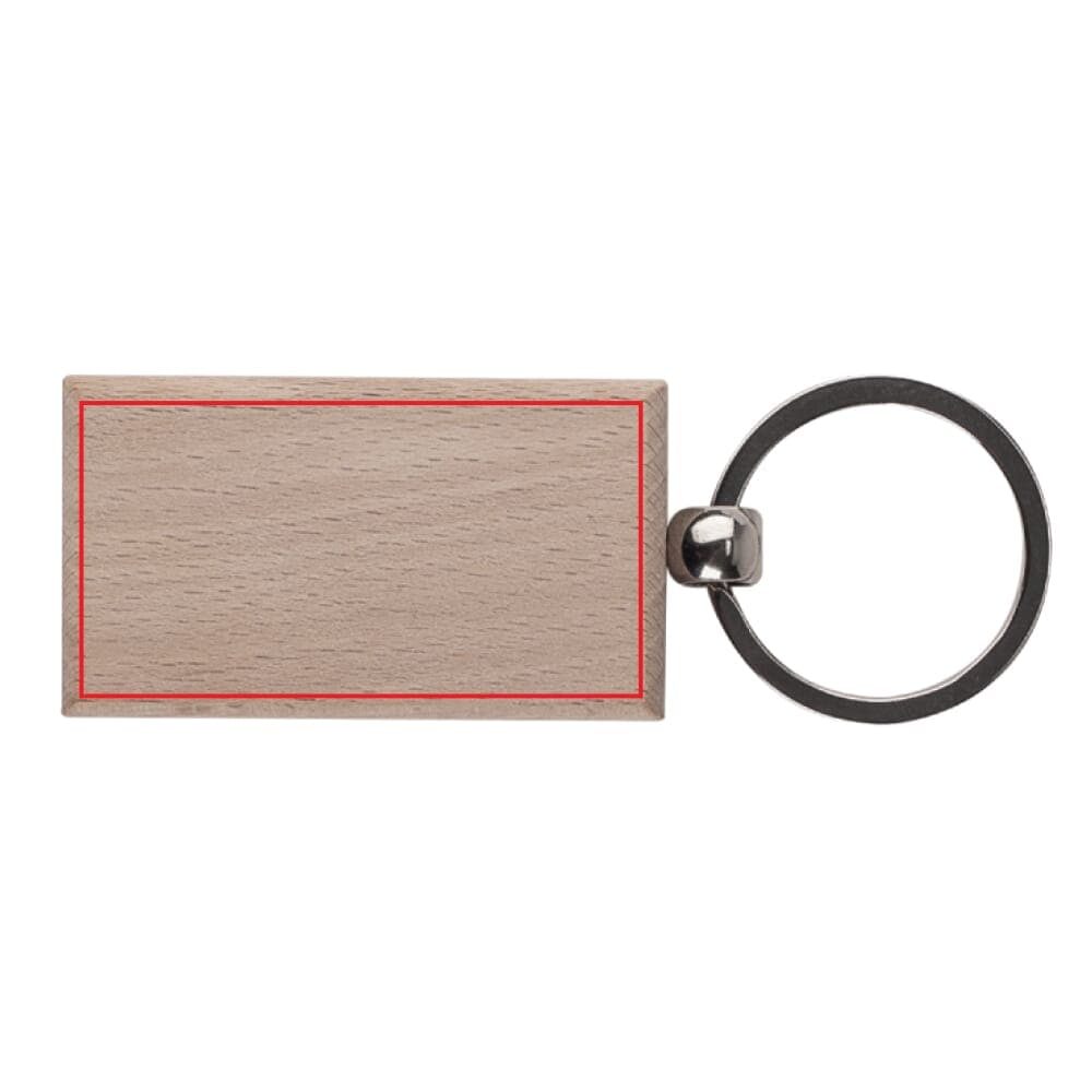 Rechthoekige sleutelhanger met houten plaatje voor een natuurlijke uitstraling.