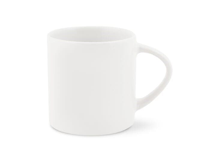 Kleine aardewerk mok. Middels sublimatie druktechniek rondom in zelfs fotokwaliteit te bedrukken. Geschikt voor alle koffie automaten.