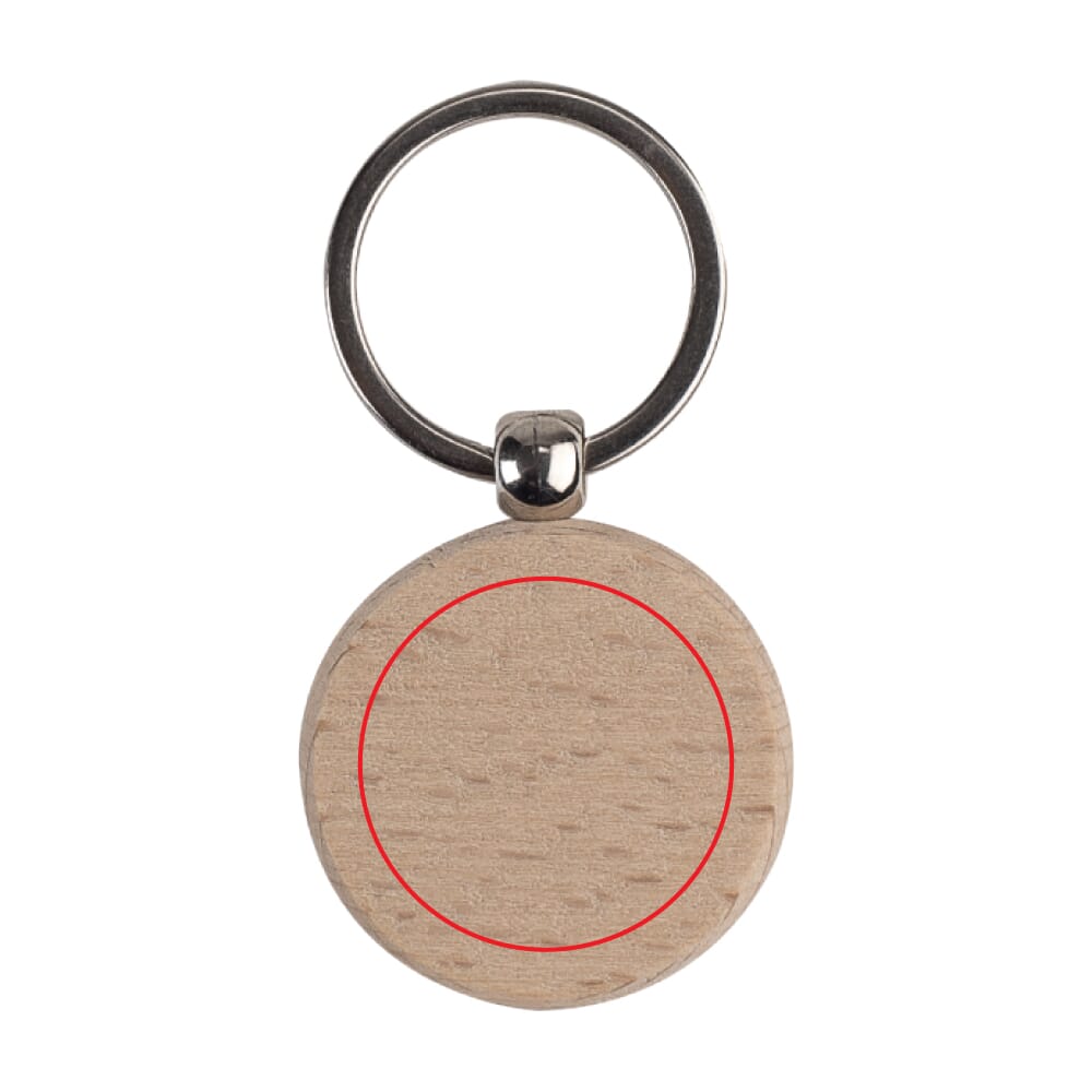 Ronde sleutelhanger met houten plaatje voor een natuurlijke uitstraling.