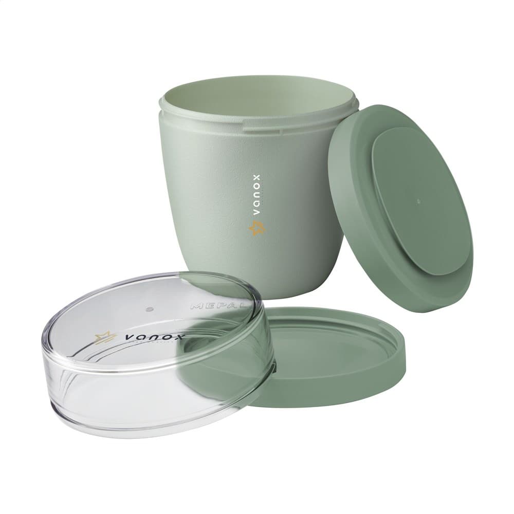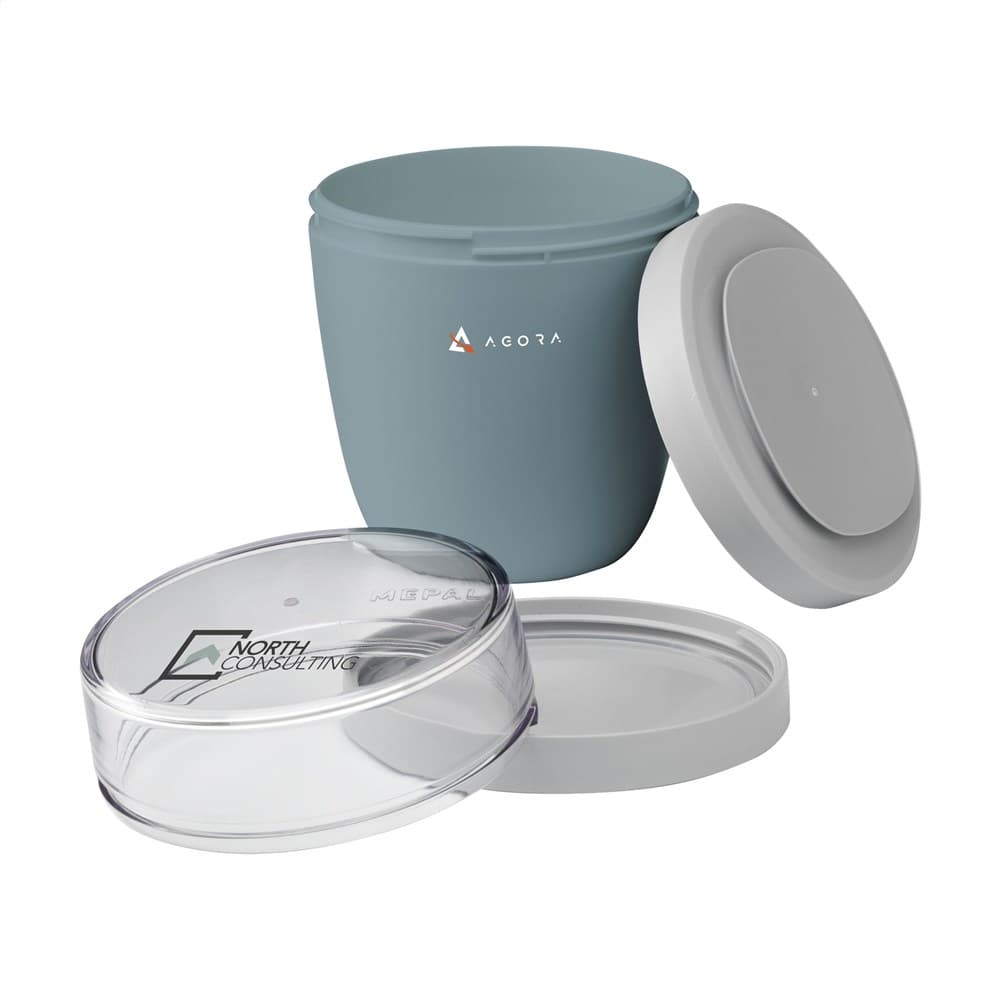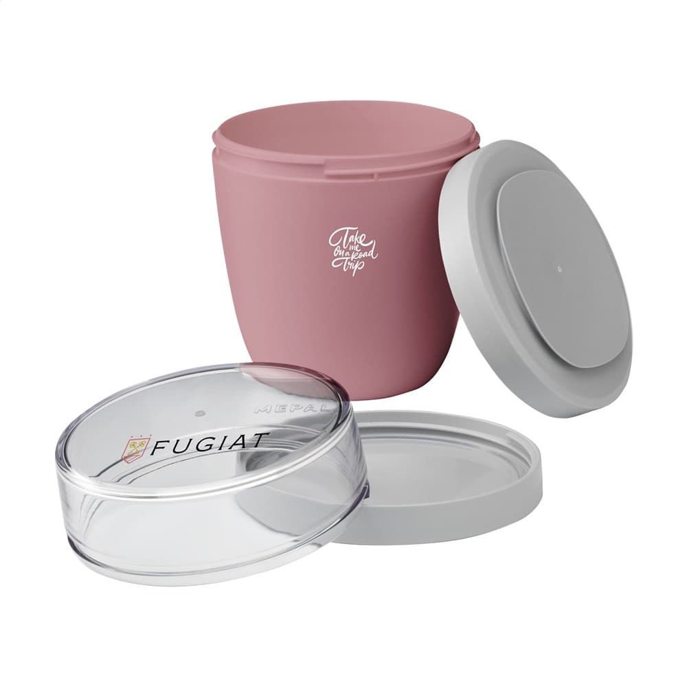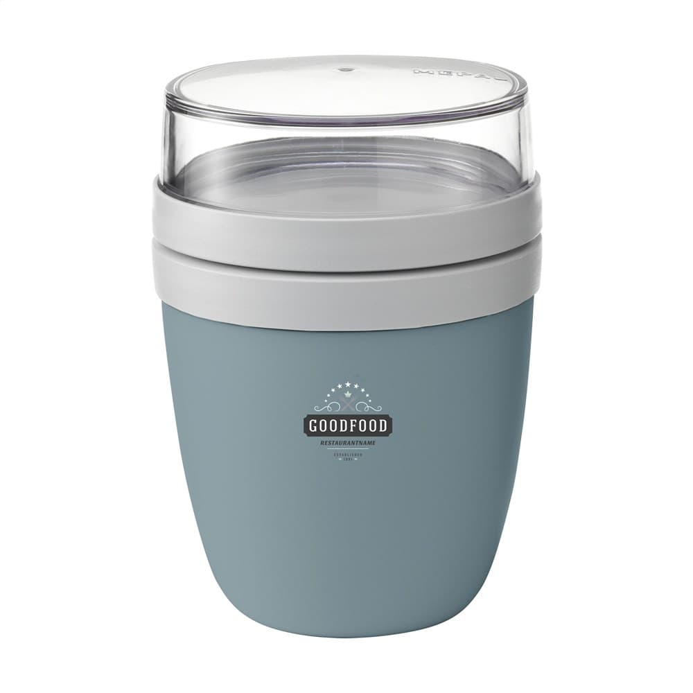 Deze duurzame, kunststof foodjar van het merk Mepal is een handig product om je lunch of tussendoortje mee te nemen. De foodjar heeft twee compartimenten. Door middel van een draaibeweging scheid je de twee compartimenten van elkaar. Beide delen hebben een aparte deksel. Dé oplossing om geknoei tijdens het mengen te voorkomen. De inhoud van het bovenste transparante compartiment is 200 ml, dit betekent dat er ongeveer 75 gram muesli of fruit in past. De inhoud van het onderste compartiment is 500 ml, genoeg voor een royale portie soep, noedels of yoghurt. Een hoogwaardig kwaliteitsproduct. BPA-vrij, Food Approved en lekvrij. Geschikt voor magnetron (deksel uitgezonderd) en vriezer. Met 2 jaar Mepal fabrieksgarantie. Made in Holland. VOORRAAD INFORMATIE: Tot 1.000 stuks beschikbaar binnen 10 werkdagen. Uitzonderingen voorbehouden.