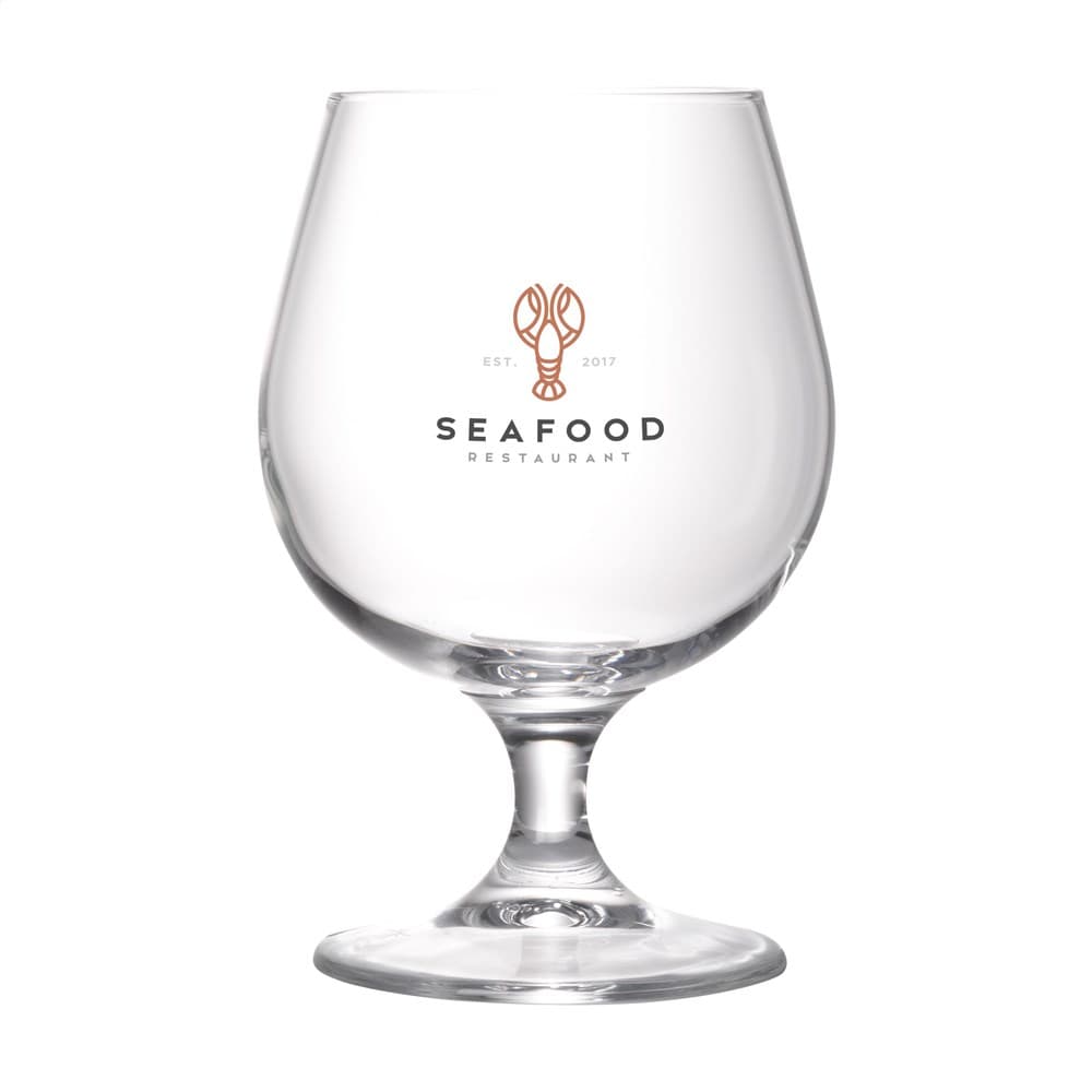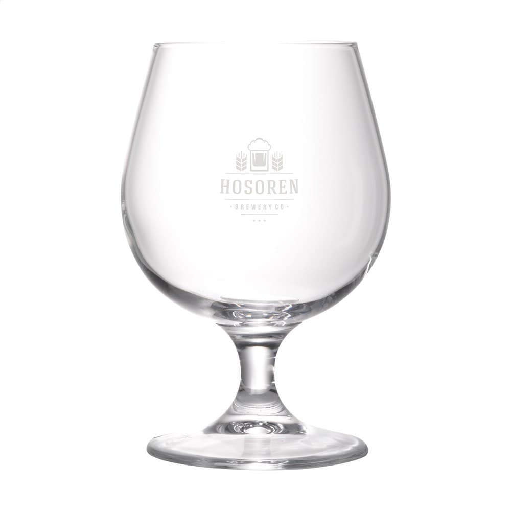 Wil je een bierglas bedrukken dat perfect is voor speciaalbier? Dit bierglas op voet met een bolle kelk laat geur en smaak optimaal tot hun recht komen en zorgt voor een mooie schuimkraag. Met een inhoud van 530 ml is dit heldere glas zeer geschikt voor gebruik in de horeca.