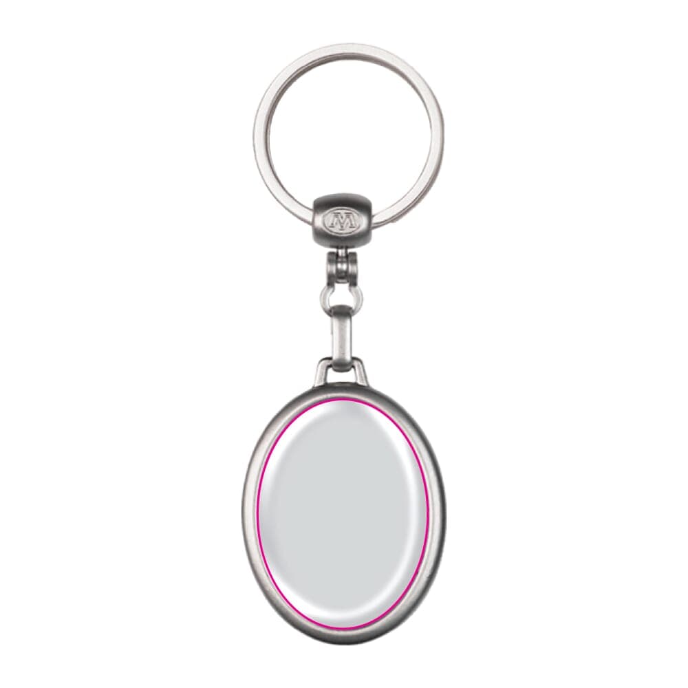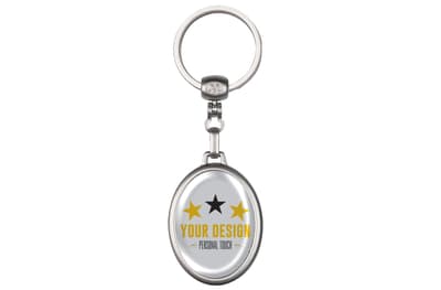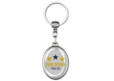 Metalen ovale sleutelhanger, mat zilver met ring. Met dubbelzijdige doming mogelijk.