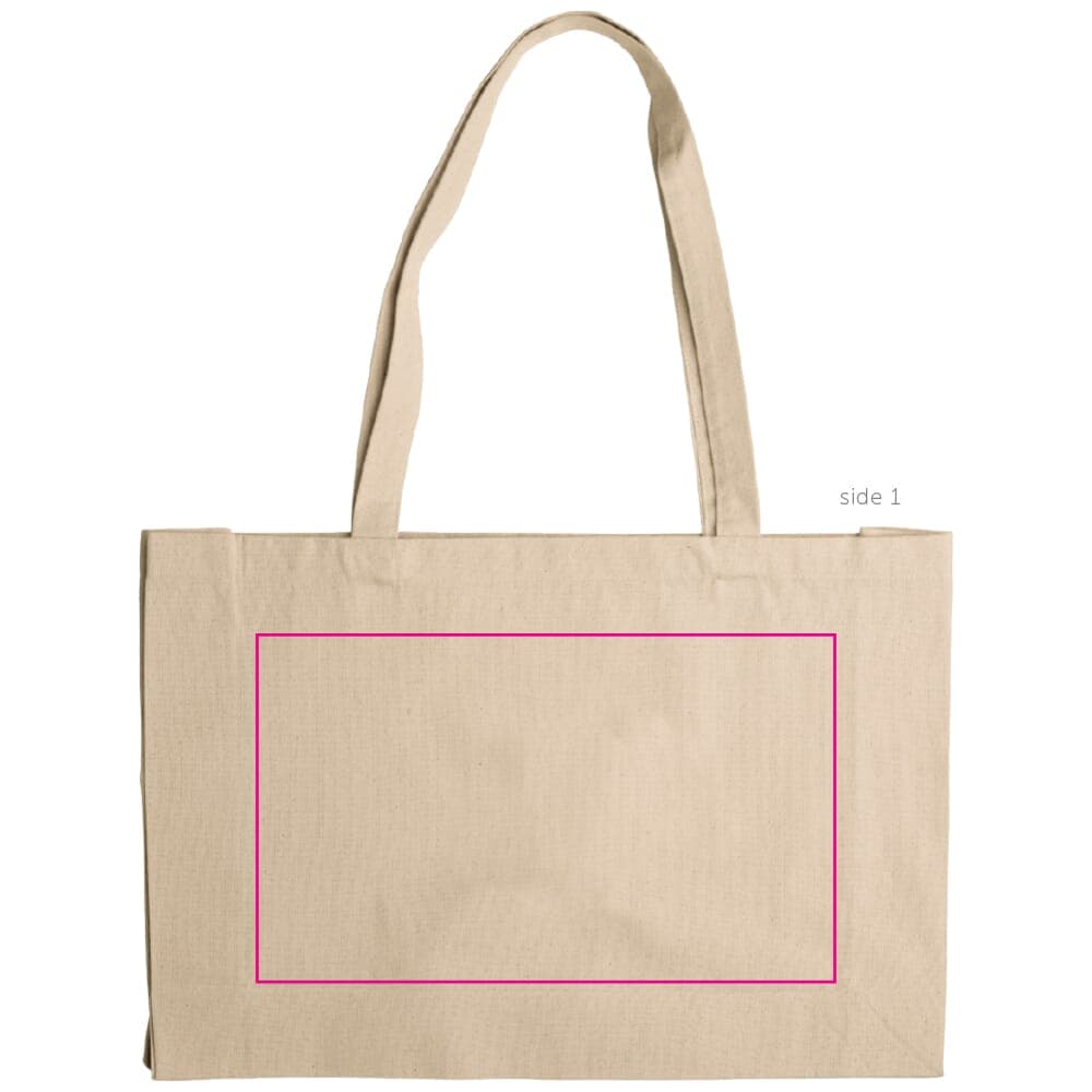 Ideale tas van een zware kwaliteit ongebleekt katoen voor promotionele activiteiten. Door de zij- en onderkant is deze tas extra ruim en met de OEKO-TEX® certificering een verantwoorde keuze. Perfect voor duurzame tassen bedrukken.