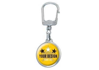 Metalen ronde sleutelhanger, mat zilver met clip. Met dubbelzijdige doming.