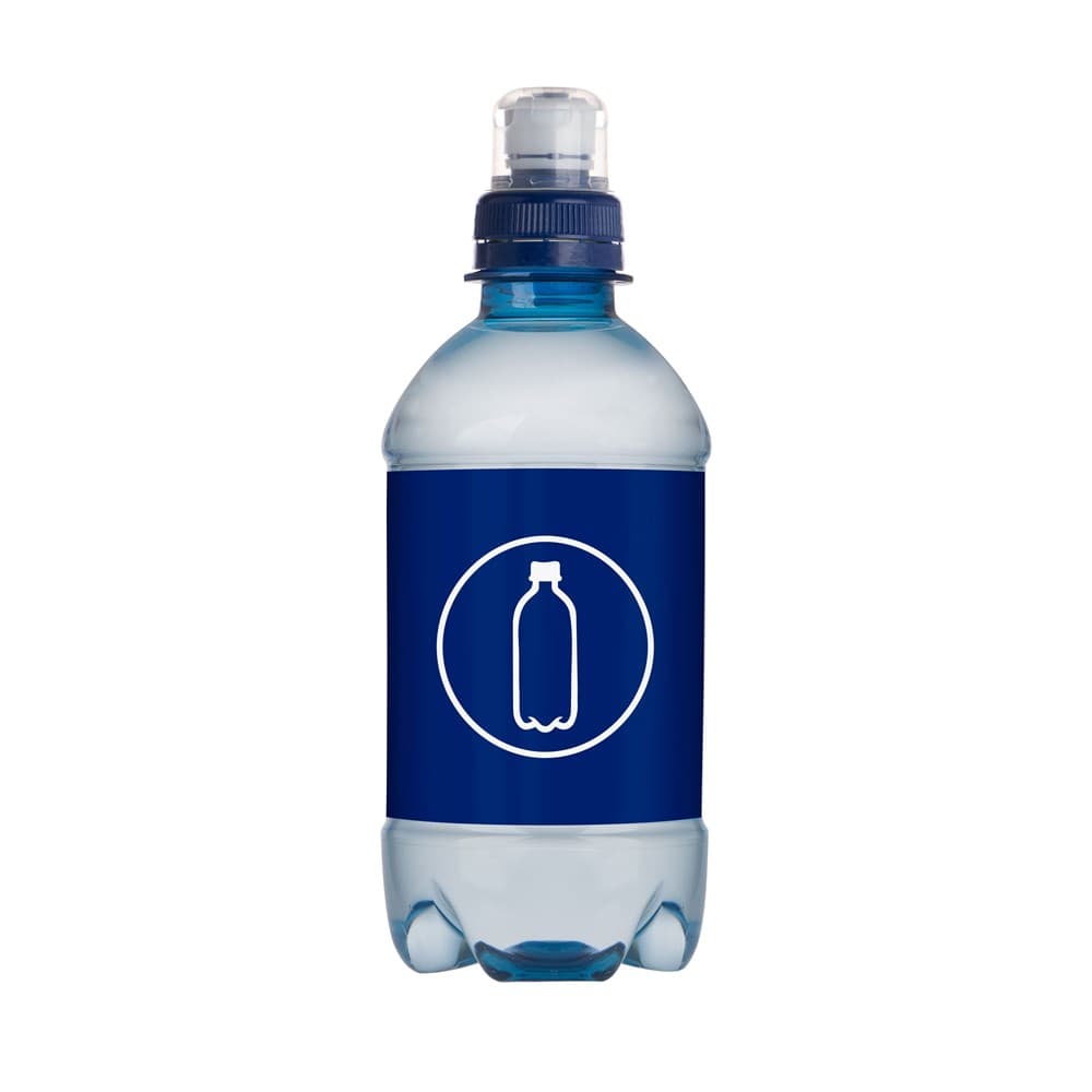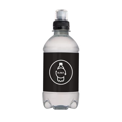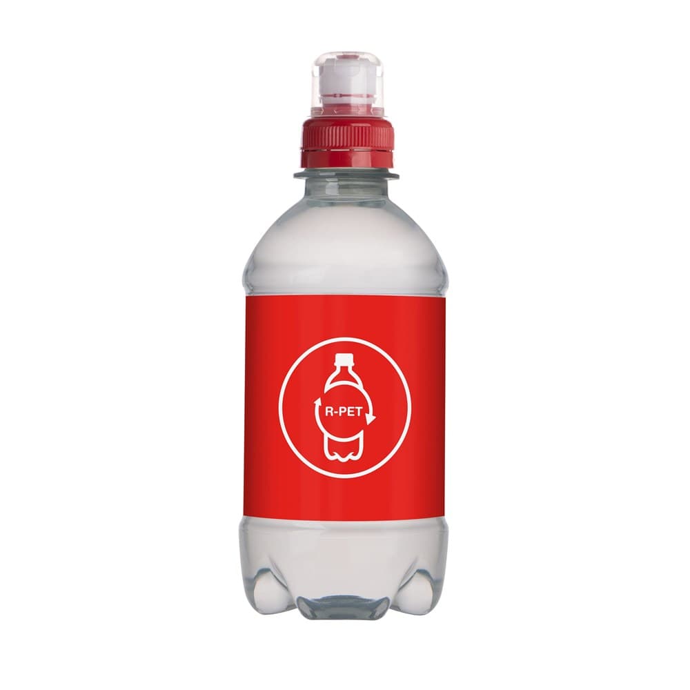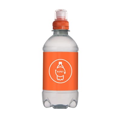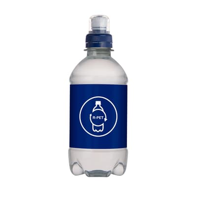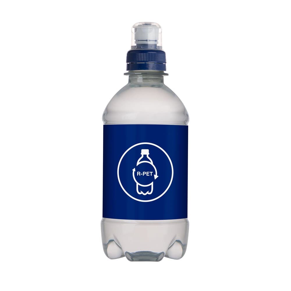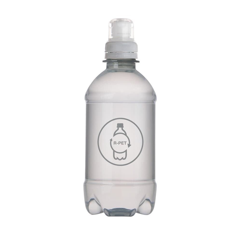 Wil je waterflesjes bedrukken die praktisch en milieuvriendelijk zijn? Deze 330 ml fles met natuurlijk bronwater is uitgevoerd in R-PET en voorzien van een sportdop, ideaal voor onderweg en promotionele acties.