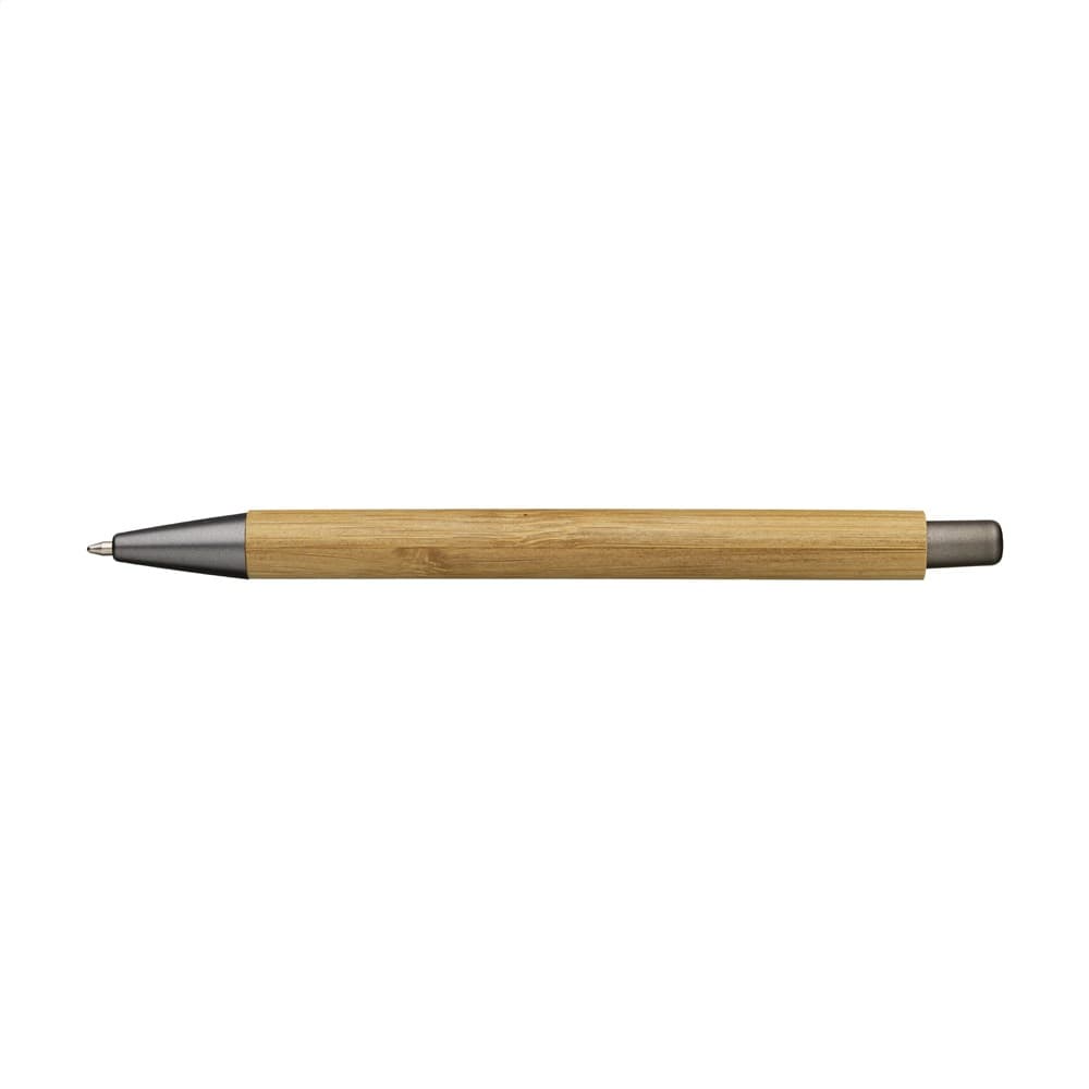 WoW! Milieuvriendelijke, blauwschrijvende balpen met mooie bamboe houder, kunststof puntstuk en drukknop en metalen clip.