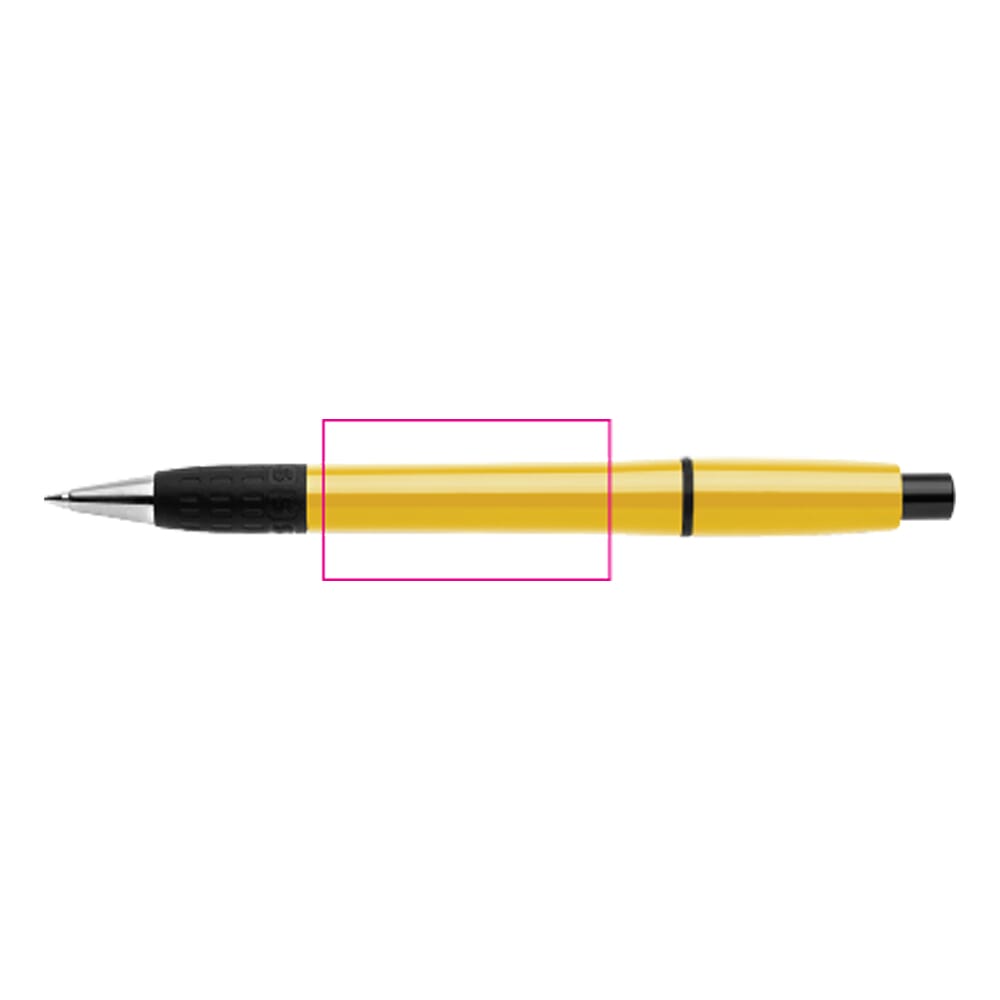 De klassieke en elegante hardcolour Semyr balpen met gekleurde body. De grip, drukker en ring in de barrel zijn zwart. De pen komt met een Jumbo vulling en bevat blauw schrijvende inkt. De pen heeft een drukmechaniek en is gemaakt van ABS kunststof. Geproduceerd in Europa. Kleur combinaties voor deze pen zijn mogelijk vanaf 5.000 stuks.