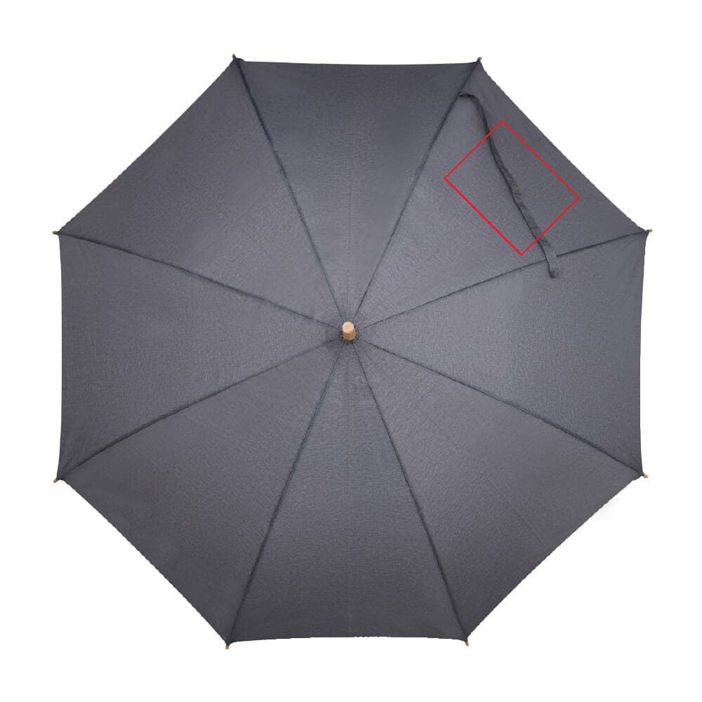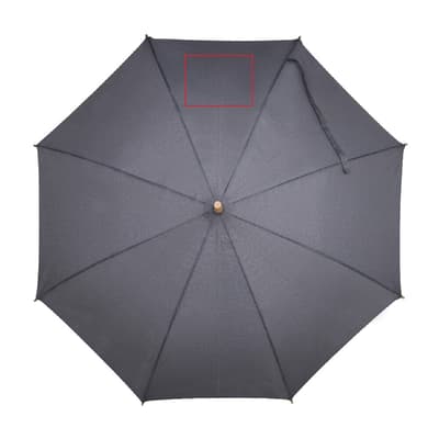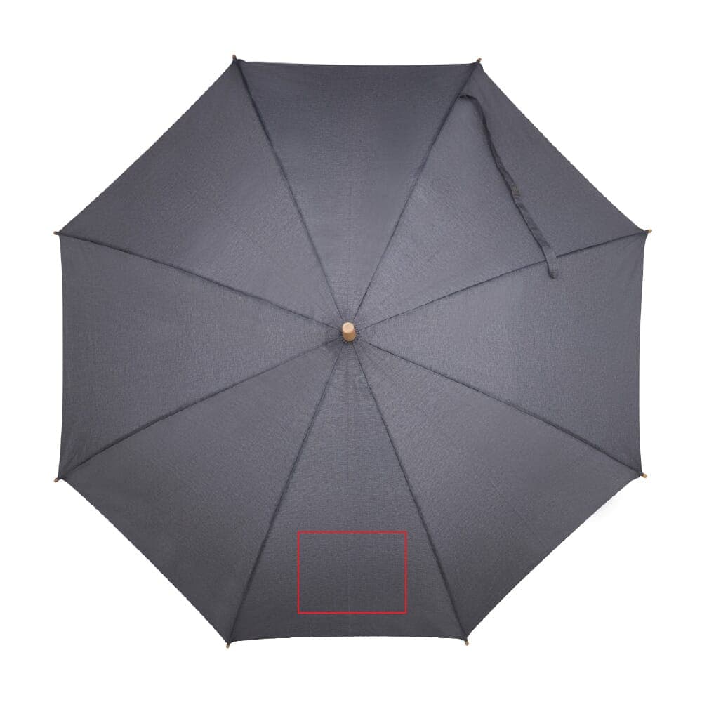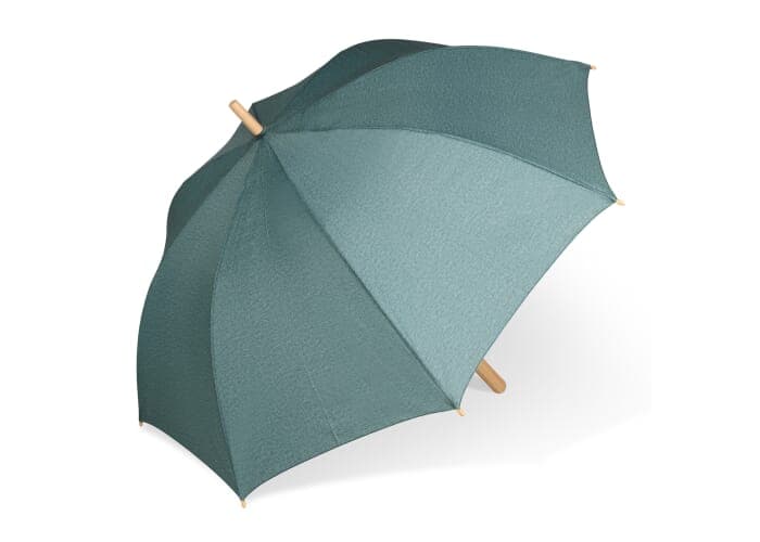 Stok paraplu gemaakt van R-PET met recht Toppoint design houten handvat. Dankzij het glasvezel frame is deze paraplu storm proof. De dopjes zijn gemaakt van bamboe en de stang van staal voor betere recycling. Het gemêleerde materiaal geeft deze paraplu een luxe uitstraling (zwart is uniform gekleurd).