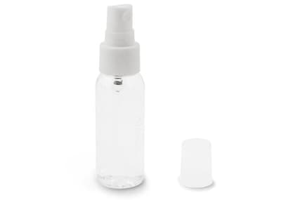 Compact flesje met een vernevelaar gevuld met een cleaning vloeistof op alcoholbasis (70%). Door het kleine formaat is het eenvoudig mee te nemen en heb je het altijd bij de hand.