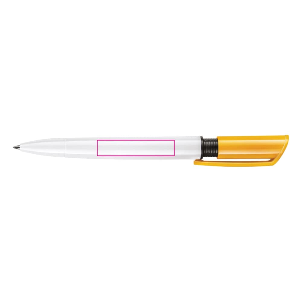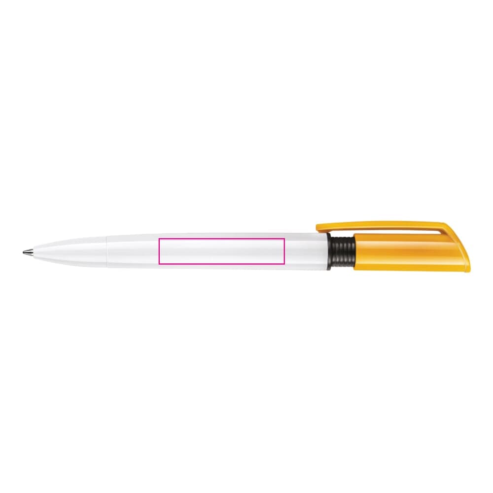 De S40 Colour balpen is een populaire pen door de gekleurde bedrukbare clip welke karakter en stijl geeft aan de pen. De witte barrel kan eenvoudig voorzien worden van een bedrukking. Het bevat een drukmechaniek en een X20 vulling met blauw schrijvende inkt. De hardcolour pen is gemaakt van ABS, geproduceerd in Europa. Kleur combinaties voor deze pen zijn mogelijk vanaf 5.000 stuks.