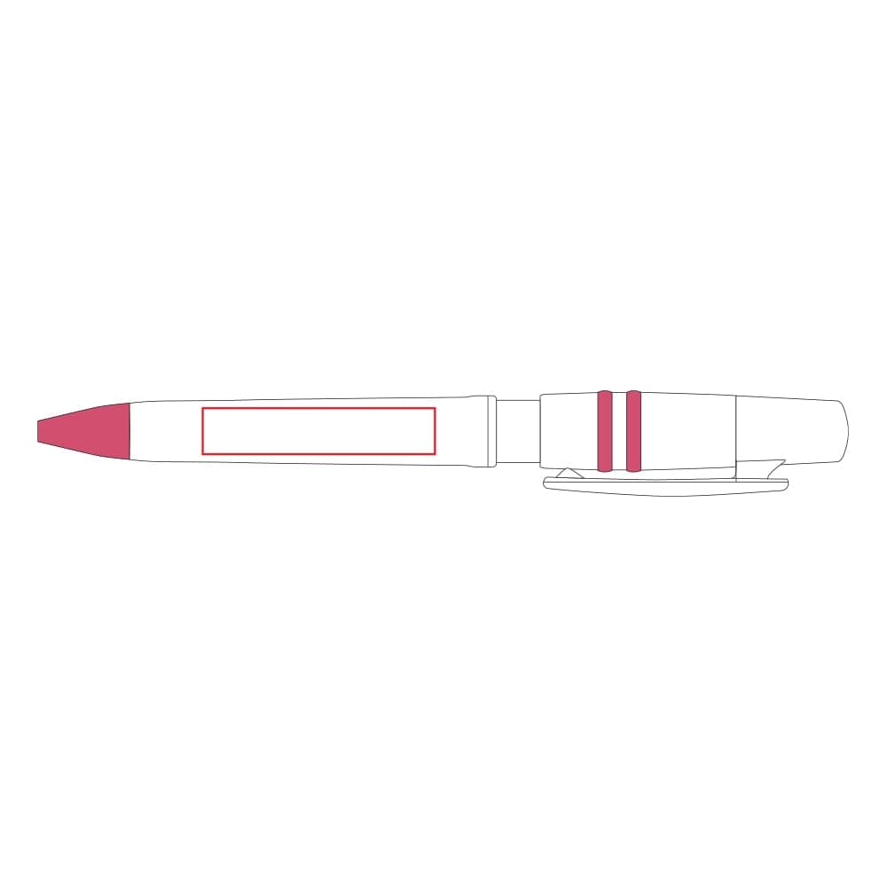 Hardcolour balpen Nora met witte barrel en clip. De ringen in de drukker zijn gekleurd. Inclusief een Jumbo vulling met blauw schrijvende inkt. De pen heeft een drukmechaniek en is gemaakt van ABS kunststof. Geproduceerd in Europa. Kleur combinaties voor deze pen zijn mogelijk vanaf 5.000 stuks.