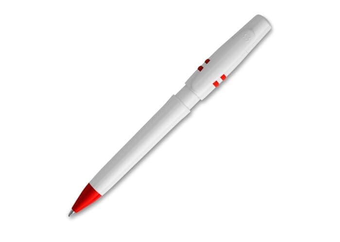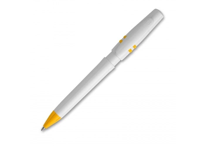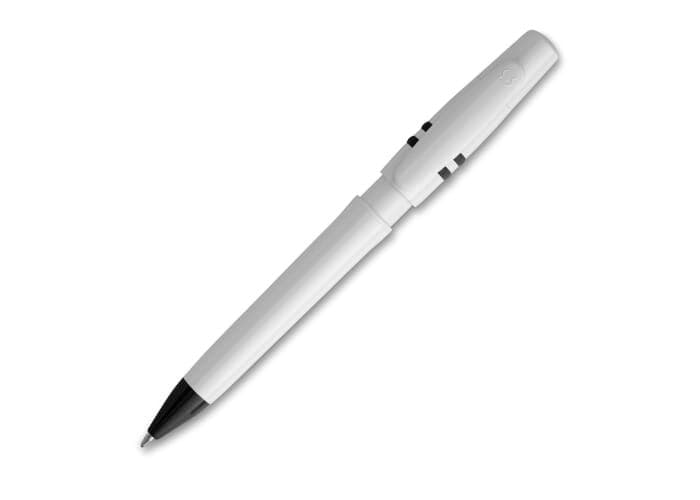 Hardcolour balpen Nora met witte barrel en clip. De ringen in de drukker zijn gekleurd. Inclusief een Jumbo vulling met blauw schrijvende inkt. De pen heeft een drukmechaniek en is gemaakt van ABS kunststof. Geproduceerd in Europa. Kleur combinaties voor deze pen zijn mogelijk vanaf 5.000 stuks.