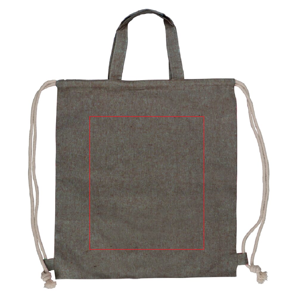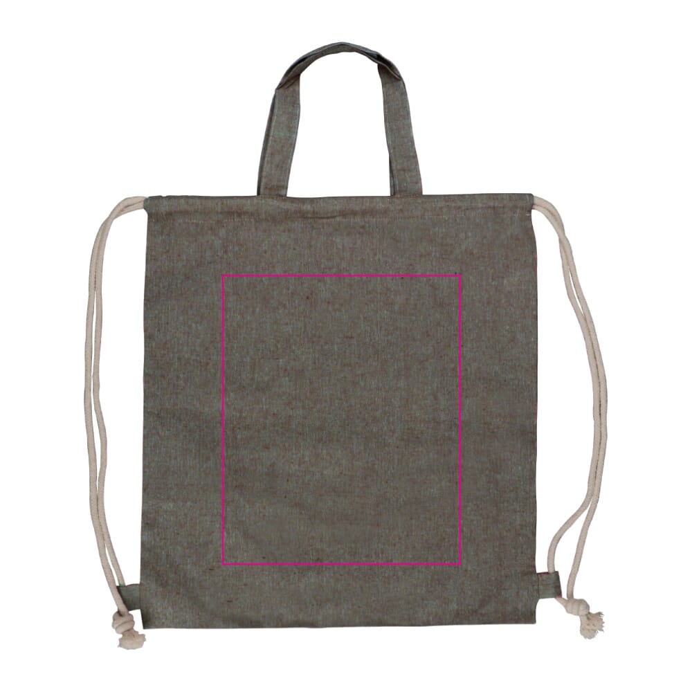 Handig rugzakje met treksluiting en handvat gemaakt van gerecycled katoen. De gevarieerde herkomst van het materiaal geeft de stof een unieke uitstraling. Lichte kleurvariaties zijn onvermijdelijk en tonen de authenticiteit van dit materiaal aan.