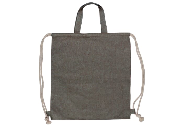 Handig rugzakje met treksluiting en handvat gemaakt van gerecycled katoen. De gevarieerde herkomst van het materiaal geeft de stof een unieke uitstraling. Lichte kleurvariaties zijn onvermijdelijk en tonen de authenticiteit van dit materiaal aan.