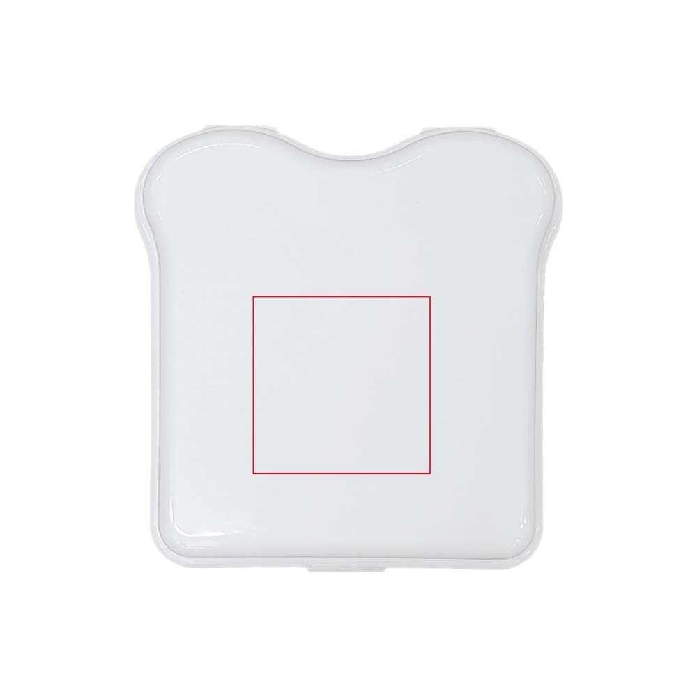 Lunchbox in de vorm van een boterham. De broodtrommel is gemaakt uit één deel. Met een clip aan de voorkant voor het afsluiten van de lunchbox. Geproduceerd in Duitsland en ideaal voor je broodtrommel bedrukken.