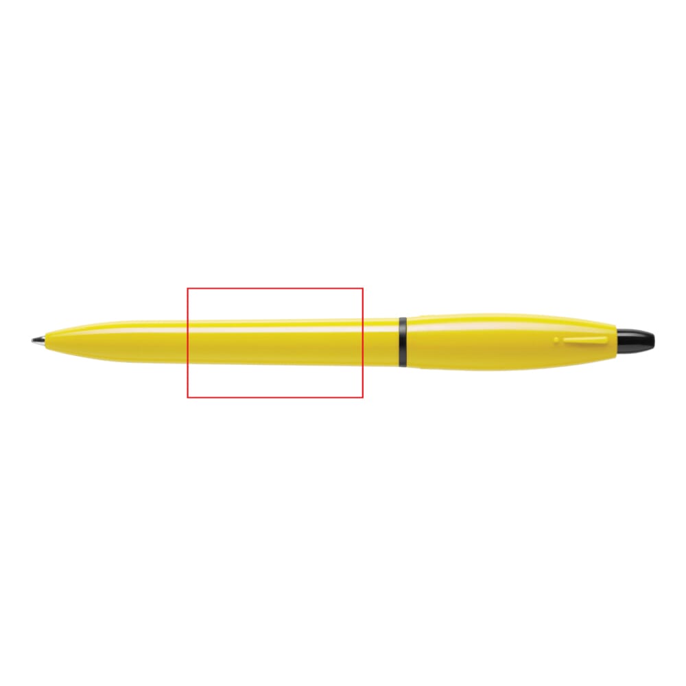 Hardcolour balpen S! Extra met gekleurde barrel, drukker en clip en bevat een zwarte ring en tip. De vulling is een X20 vulling en bevat blauw schrijvende inkt. De barrel kan eenvoudig worden voorzien van een bedrukking. Het heeft een drukmechaniek en is gemaakt van ABS. Geproduceerd in Europa. Kleur combinaties voor deze pen zijn mogelijk vanaf 5.000 stuks.