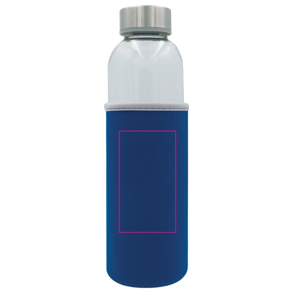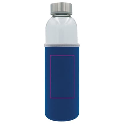 Glazen waterfles met sleeve. De fles zorgt er voor dat dranken langer koel blijven door middel van de sleeve er om heen. Inclusief een bandje aan de dop voor het eenvoudig vasthouden van de fles. Geschikt voor koude, koolzuurhoudende en niet-koolzuurhoudende dranken. Wordt verpakt in geschenkverpakking.