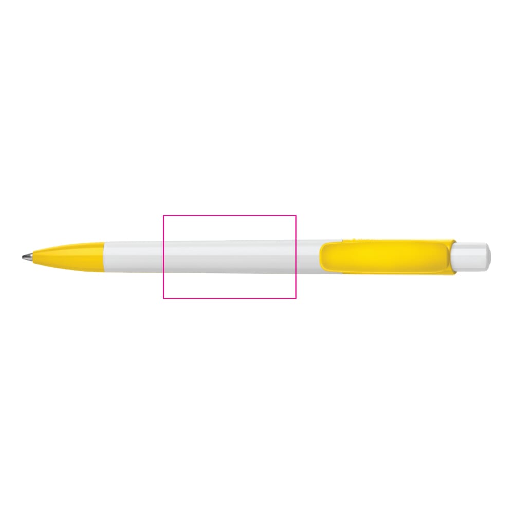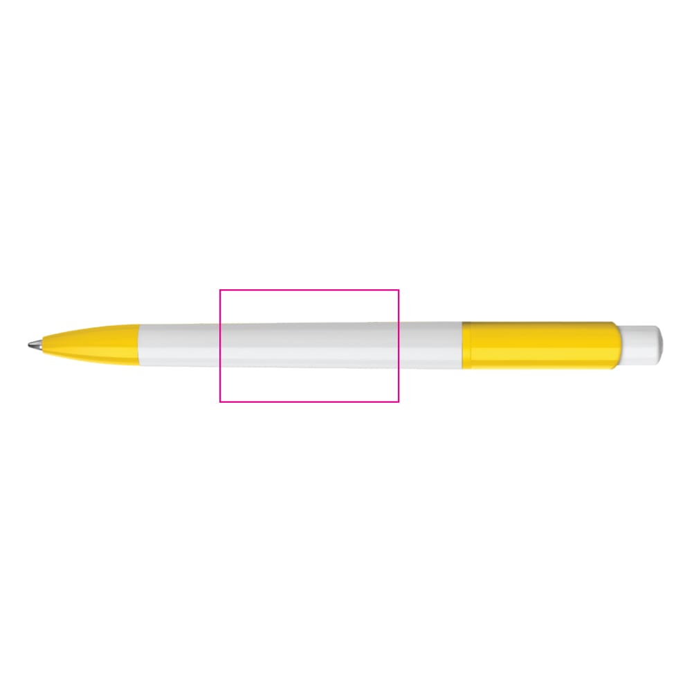 De Kamal balpen in hardcolour heeft een groot drukoppervlak op zowel de clip als de barrel. Met combinatie van een witte barrel en drukker en een gekleurde clip. Inclusief een drukmechaniek en een blauw schrijvende X20 vulling. De pen is gemaakt van ABS kunststof, geproduceerd in Europa.