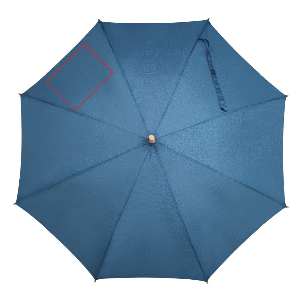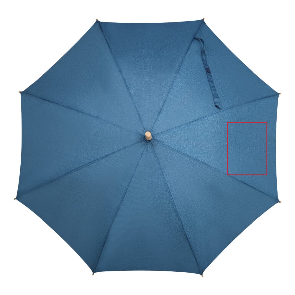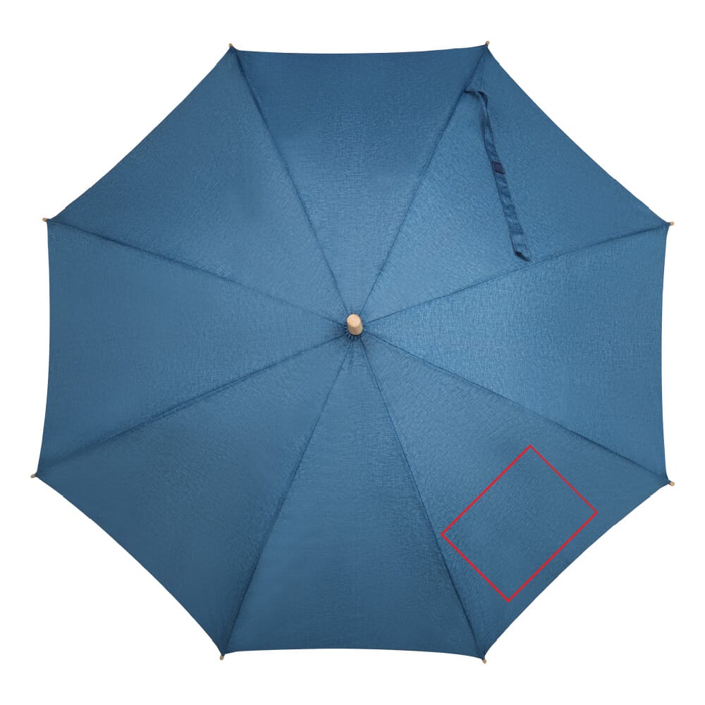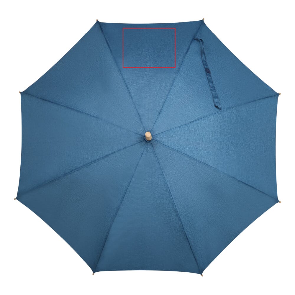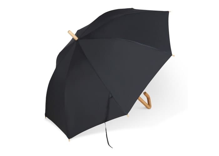 Stokparaplu gemaakt van R-PET met Toppoint design houten handvat in de vorm van een haak. Dankzij het glasvezel frame is deze paraplu storm-proof. De dopjes zijn gemaakt van bamboe en de stang van staal voor betere recycling. Het gemêleerde materiaal geeft deze paraplu een luxe uitstraling (zwart is uniform gekleurd).