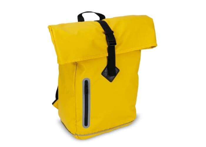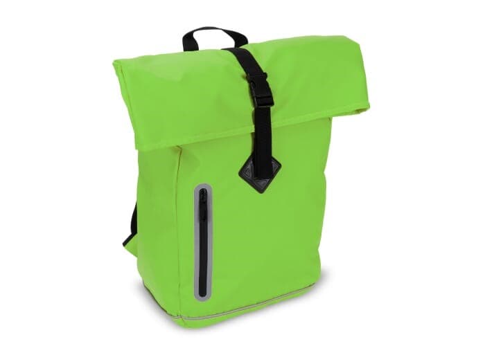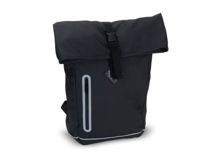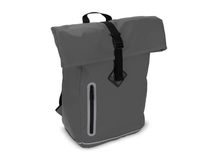 Stijlvolle rugzak met reflecterende details op zowel de voorzijde als de schouderbanden. De gladde coating op het materiaal, de oprolbare bovenkant als de naadloze rits maken deze tas waterafstotend (IPX1). Het rugpaneel en de schouderbanden zijn geschuimd voor extra draagcomfort.