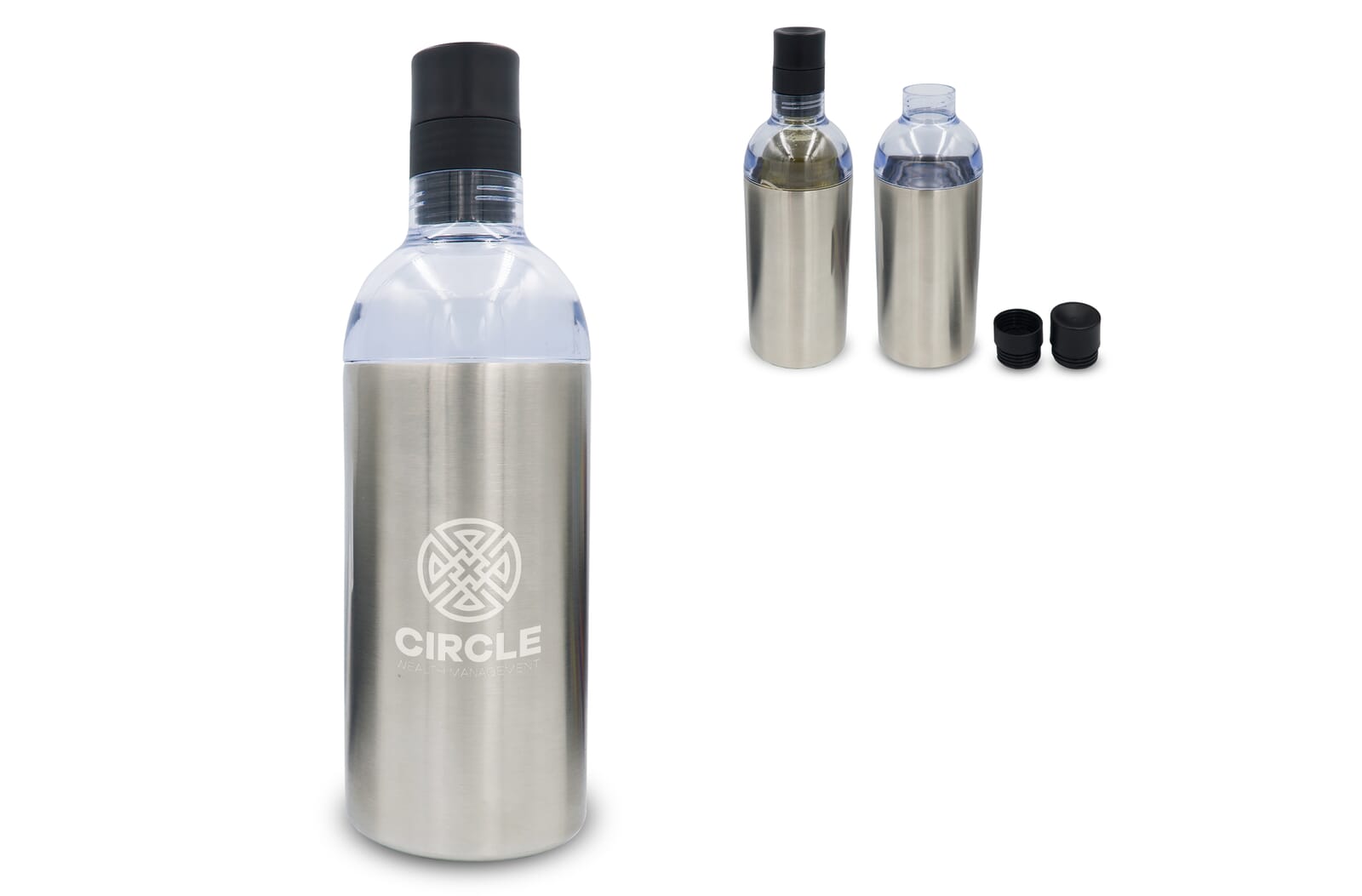 Stevige dubbelwandige roestvrijstaal cooler om een wijnfles koel te houden en dankzij de handige dop kan de wijn geschonken worden terwijl de fles in de cooler blijft. Geschikt voor veel type flessen en ideaal voor een picknick of barbecue avond.