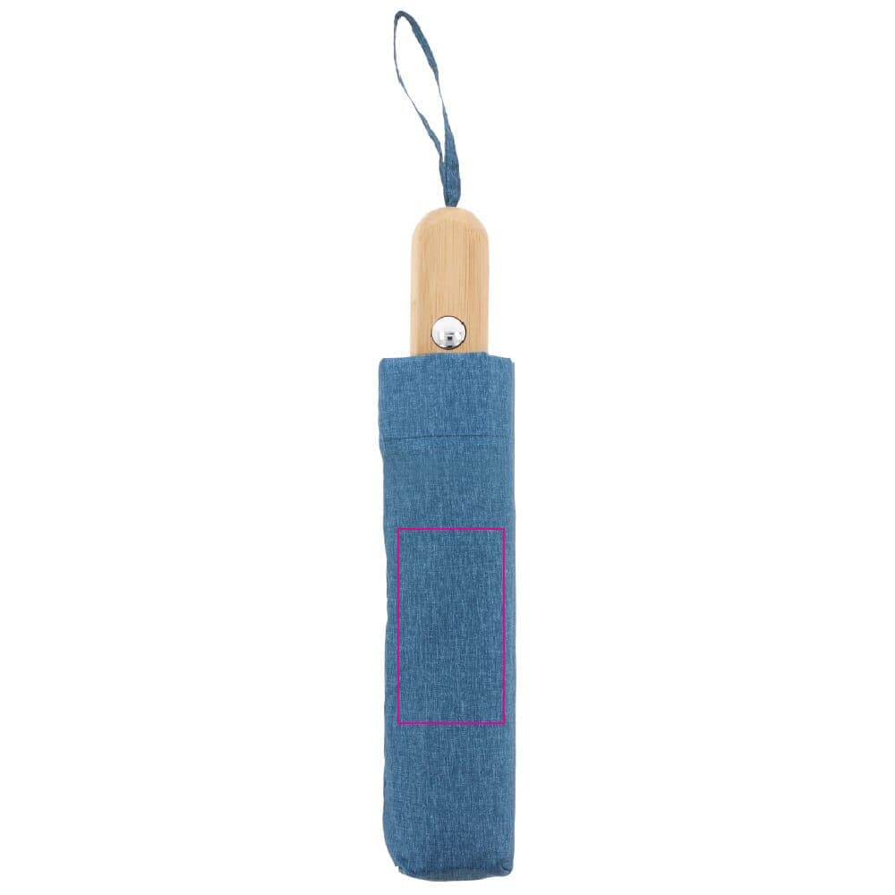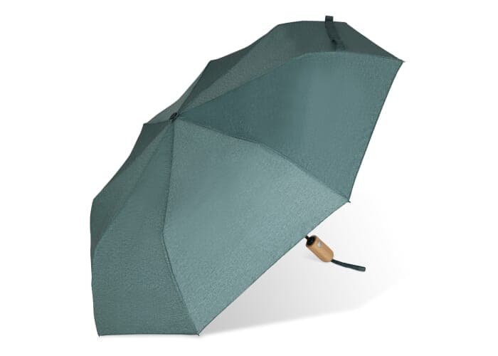 Paraplu gemaakt van R-PET met een Toppoint design handvat van echt hout. Dankzij de glasvezel delen van het frame is deze paraplu windproof en het opent met één druk op de knop. Het gemêleerde effect geeft deze paraplu een luxe uitstraling (zwart is volledig gekleurd).