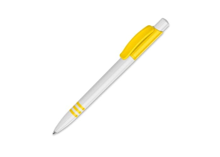 De Tropic balpen in hardcolour heeft een groot drukoppervlak op zowel de clip als de barrel. Met combinatie van een witte barrel en drukker en een gekleurde clip. De barrel bevat drie gekleurde ringen in dezelfde kleur als de clip. Inclusief een drukmechaniek en een blauw schrijvende Jumbo vulling. De pen is gemaakt van ABS kunststof, geproduceerd in Europa. Kleur combinaties voor deze pen zijn mogelijk vanaf 5.000 stuks.