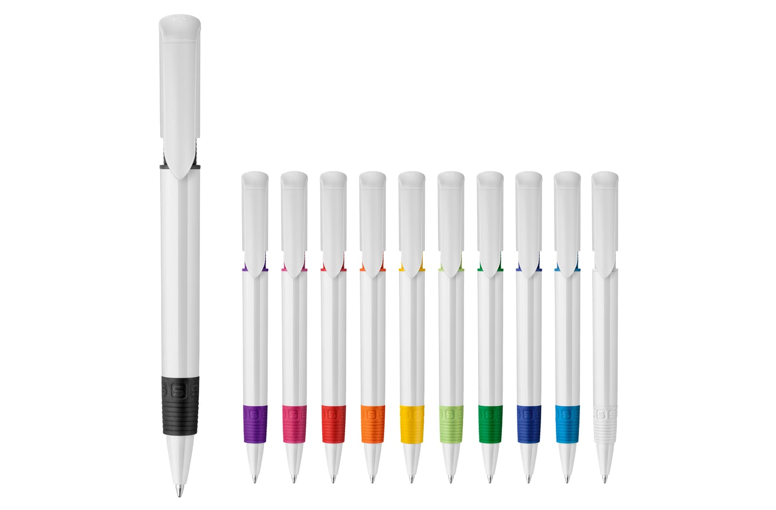 De S40 Grip balpen is een populaire pen door de gekleurde bedrukbare clip welke karakter en stijl geeft aan de pen en de grip op de pen die dezelfde kleur heeft als de pen. De witte barrel kan eenvoudig voorzien worden van een bedrukking. Het bevat een drukmechaniek en een Toppoint jumbo vulling met blauw schrijvende inkt. De hardcolour pen is gemaakt van ABS, geproduceerd in Europa. Kleur combinaties voor deze pen zijn mogelijk vanaf 5.000 stuks.