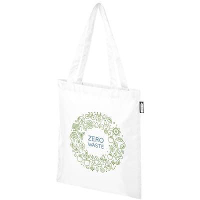 Goedkope tas, gemaakt van 100% gerecycled, van consumenten afkomstig kunststof dat bijdraagt aan de vermindering van kunststofafval. Voorzien van twee handgrepen met een lengte van 27 cm. Geschikt tot 5 kg gewicht.