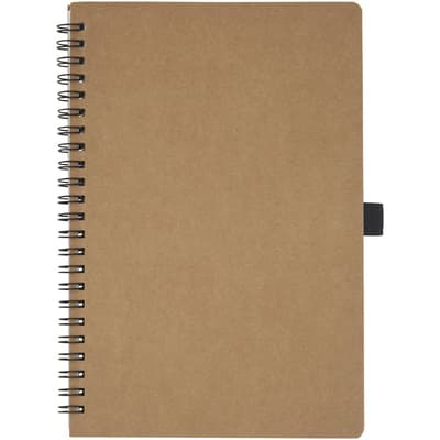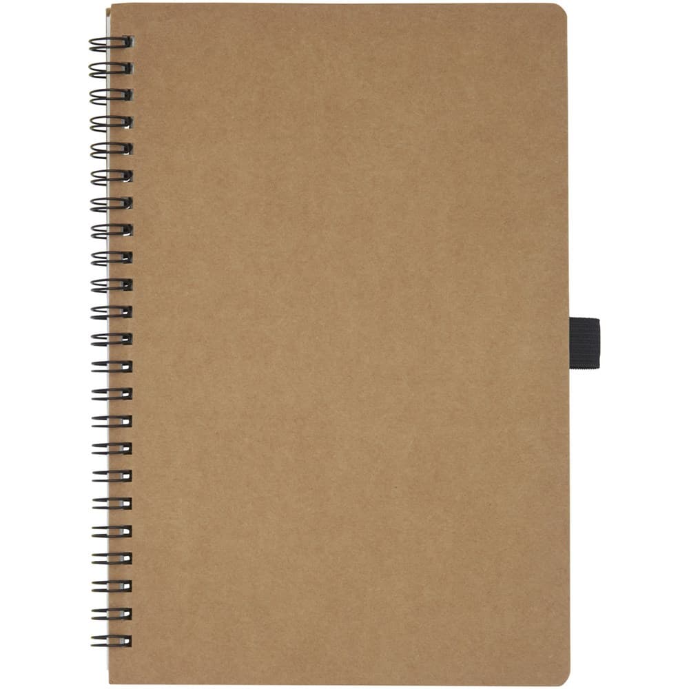 Wire-o-notitieboek in A5-formaat met cover uit gerecycled karton en penlus. Bevat 70 vellen 60 g/m² gelijnde binnenpagina's gemaakt van steen. Steenpapier is 100% boomvrij en het productieproces verbruikt minder energie in vergelijking met gerecycled of nieuw pulppapier. Het papier is water- en scheurbestendig en heeft een natuurlijke witte kleur (er is geen bleekmiddel gebruikt).