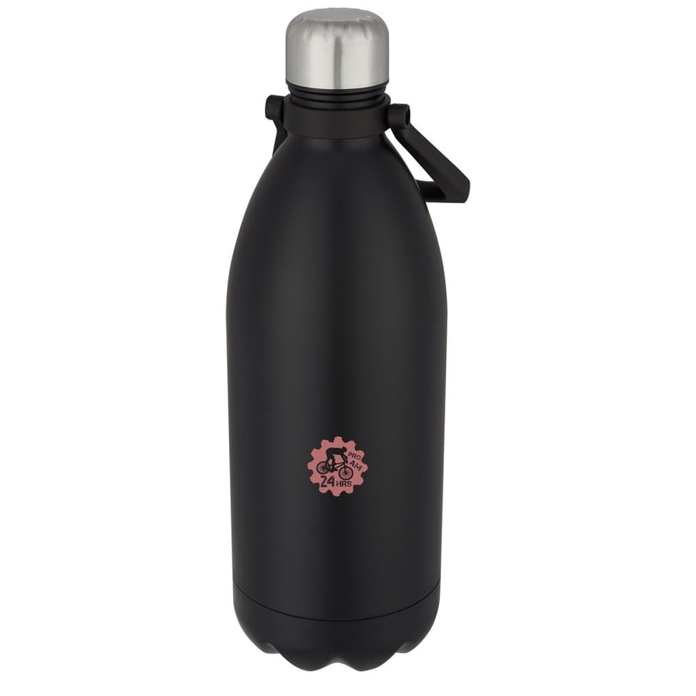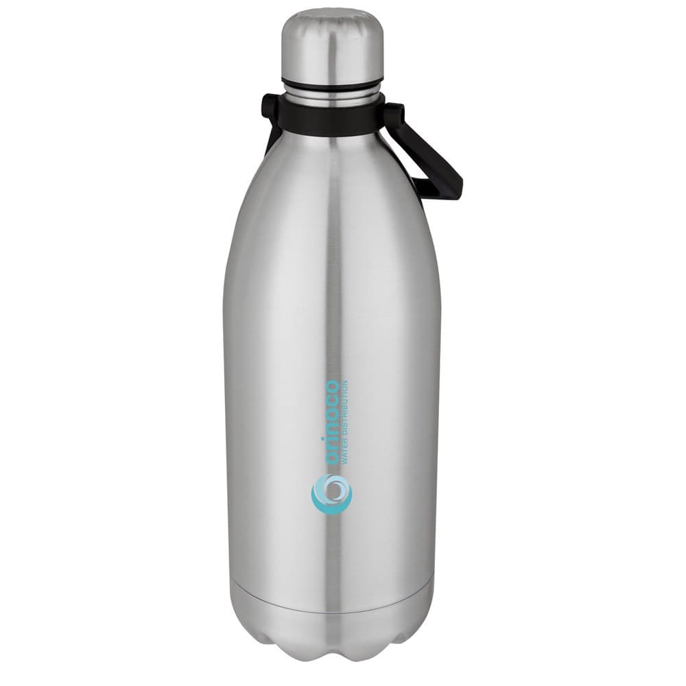 Extra grote vacuüm geïsoleerde roestvrijstalen fles met een iconisch ontwerp en een comfortabel handvat voor gemakkelijk dragen. Het geïsoleerde 18/8 roestvrijstaal houdt dranken meerdere uren warm of koud. BPA-vrij, getest en goedgekeurd volgens de Duitse voedselveiligheidswetgeving (LFGB). Getest en goedgekeurd voor ftalaten volgens de REACH-regelgeving. De inhoud is 1,5 liter. Handwas aanbevolen. Geleverd in een gerecycled kartonnen geschenkverpakking.