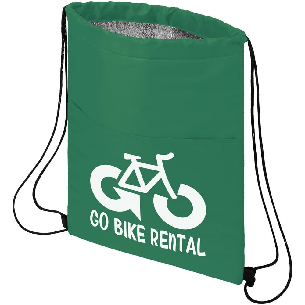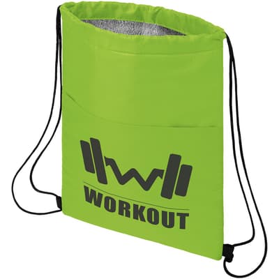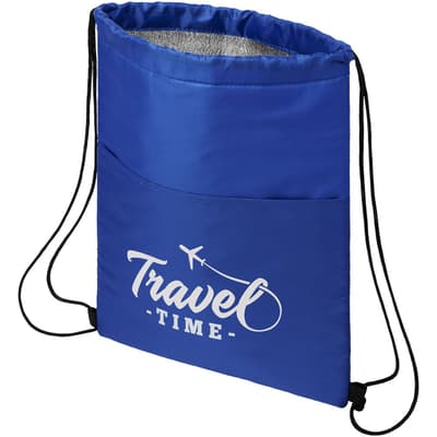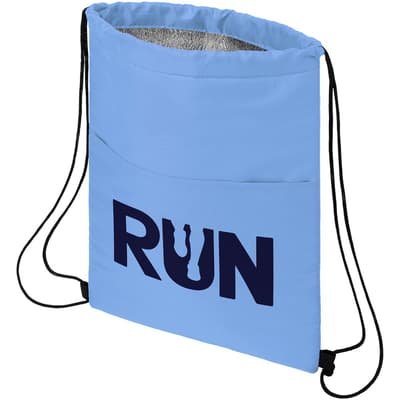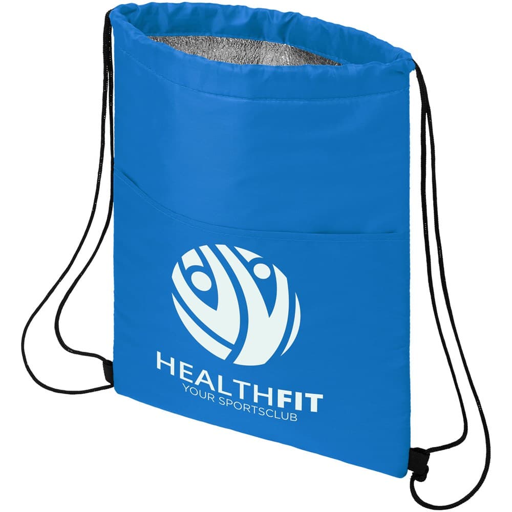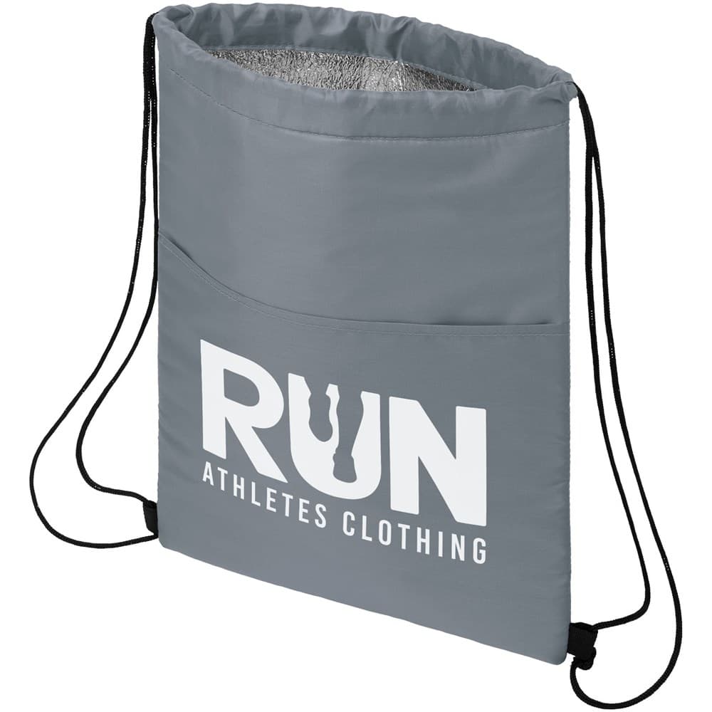 Koeltas met koordsluiting in de kleur zwart. Voorzien van een open voorvak. Ruimte voor 12 blikjes. Geschikt voor een gewicht tot 5 kg.