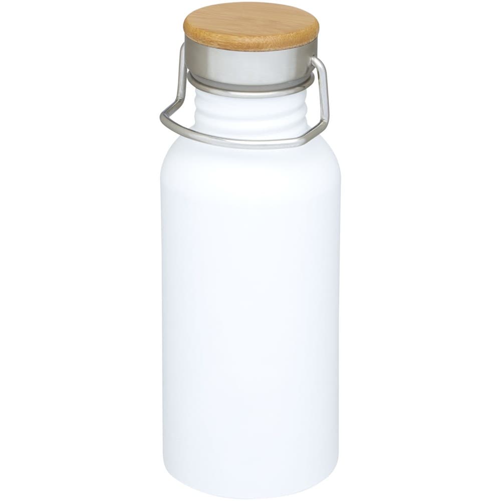 Enkelwandige drinkfles van roestvrijstaal met schroefdop. Het deksel is voorzien van een bamboetop, evenals een hengsel voor gemakkelijk dragen. Volumecapaciteit is 550 ml. Geleverd in een geschenkverpakking.
