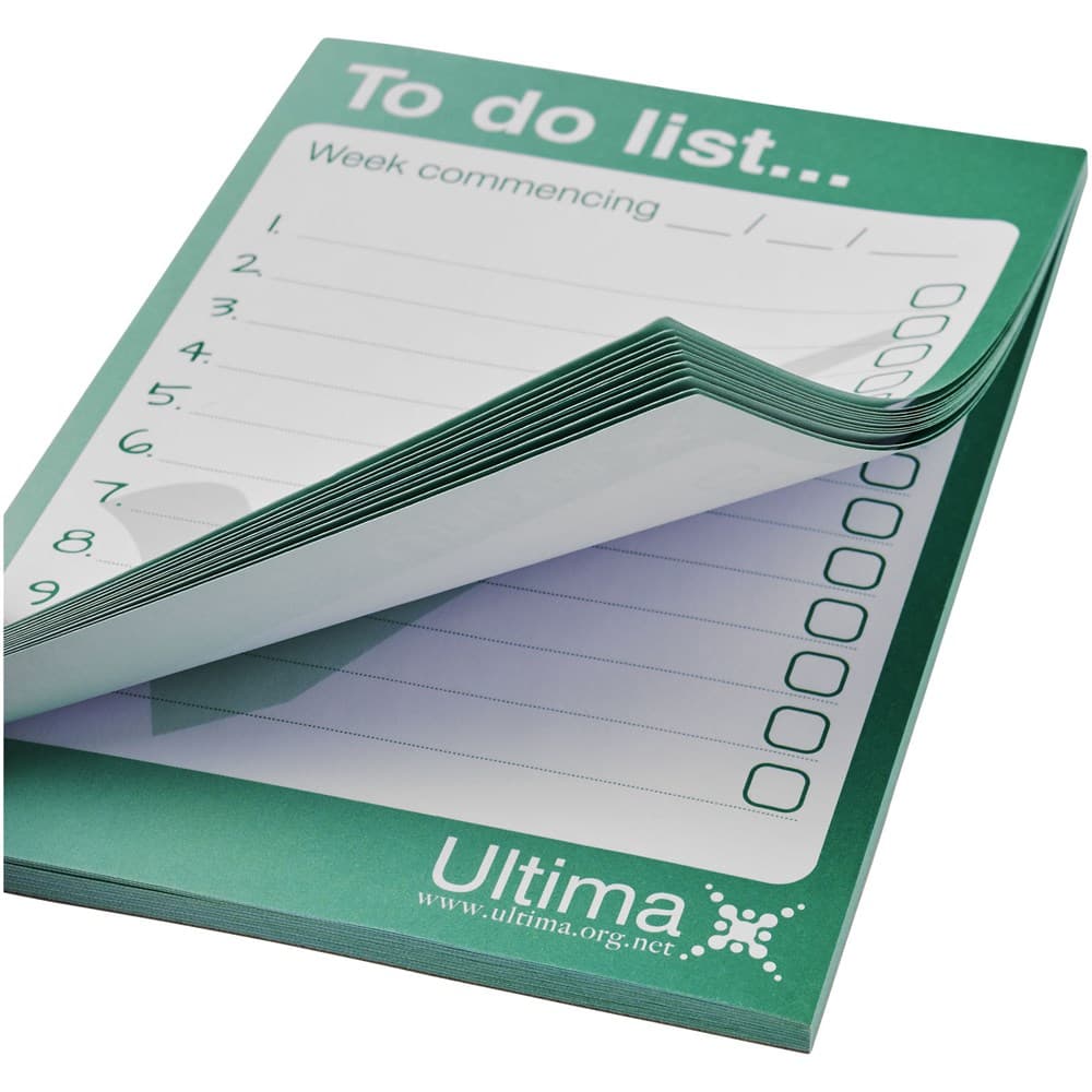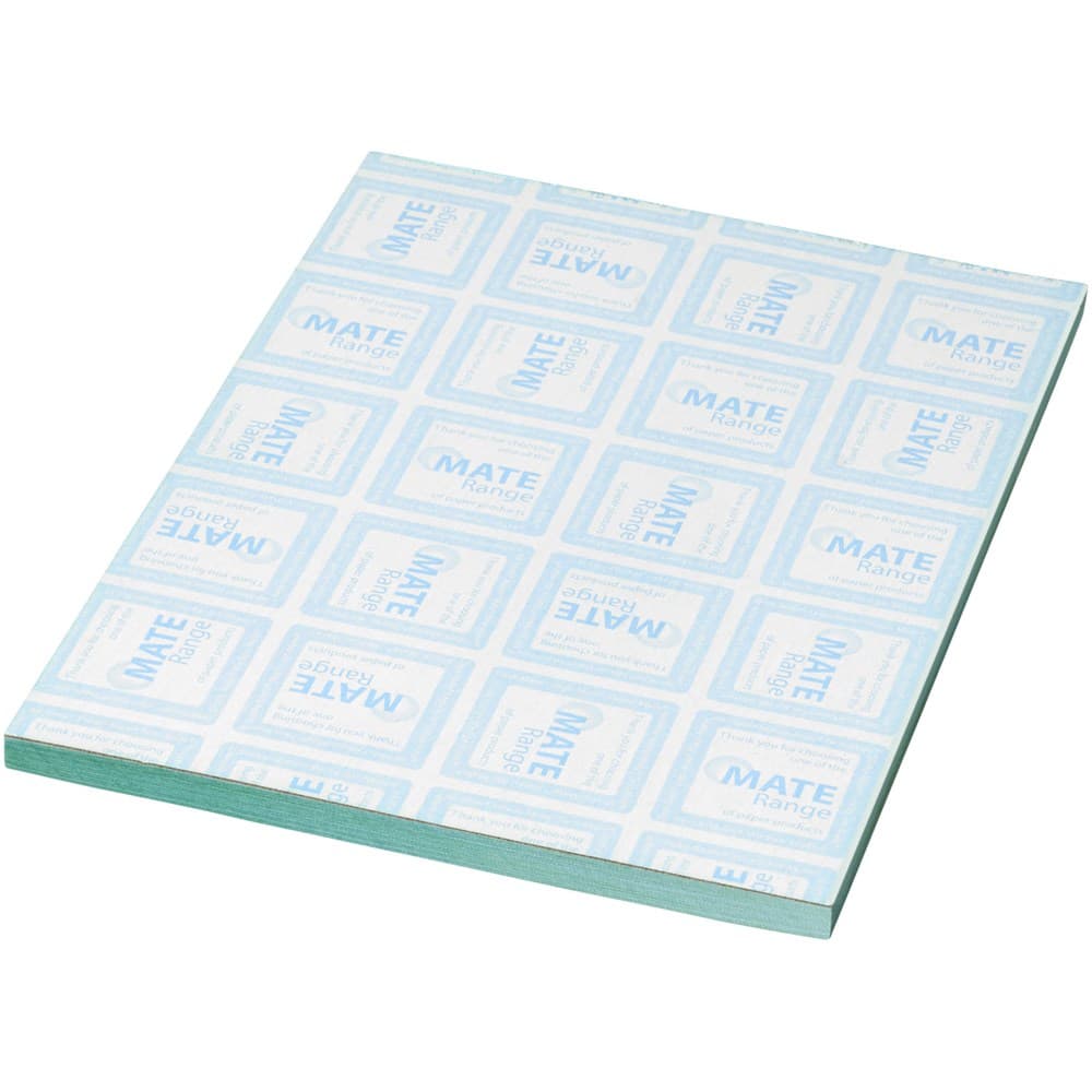 Wit A6 Desk-Mate® kladblok. Standaardmodel Inclusief 50 vel 80 g/m2 papier. Full colour bedrukking beschikbaar op elk vel. Beschikbaar in 3 formaten (25/50/100 vellen).