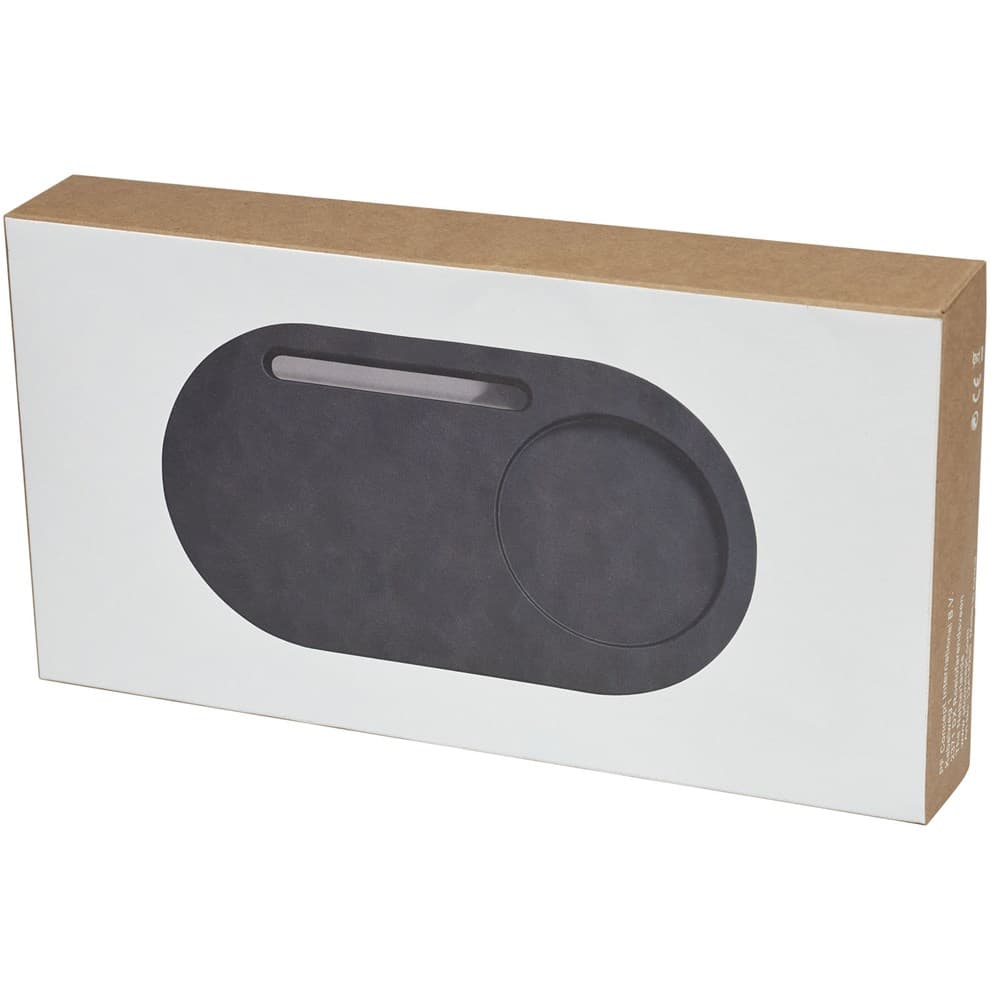 5W draadloze oplader bureauset gemaakt van een combinatie van natuurlijke kalksteen en kurk. Om een apparaat met draadloze technologie op te laden, heb je een externe ontvanger voor draadloos opladen of hoesje met ingebouwde draadloze ontvanger nodig.Verpakt in een geschenkverpakking en geleverd met een gebruiksaanwijzing (beide gemaakt van duurzaam materiaal). USB-kabel van 100 cm inbegrepen.