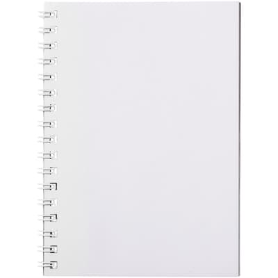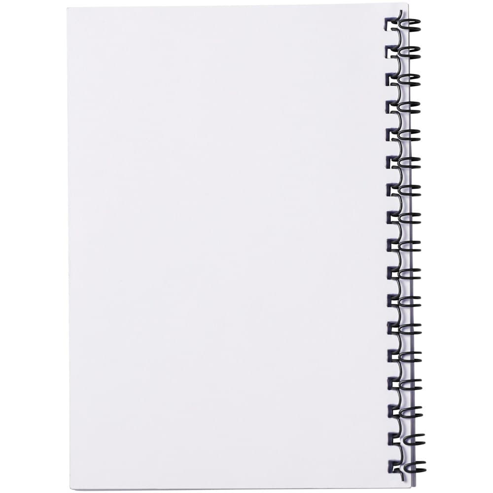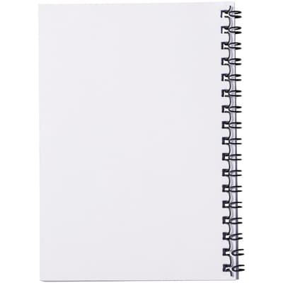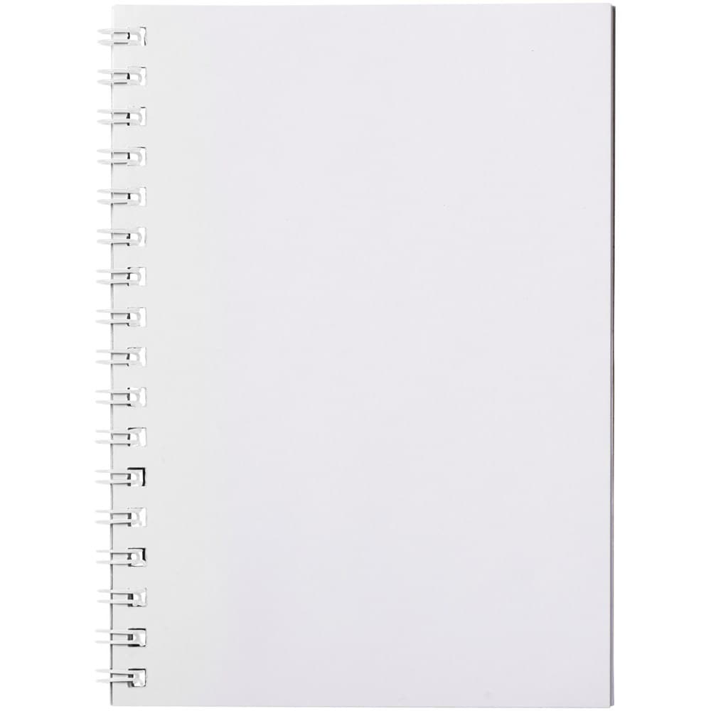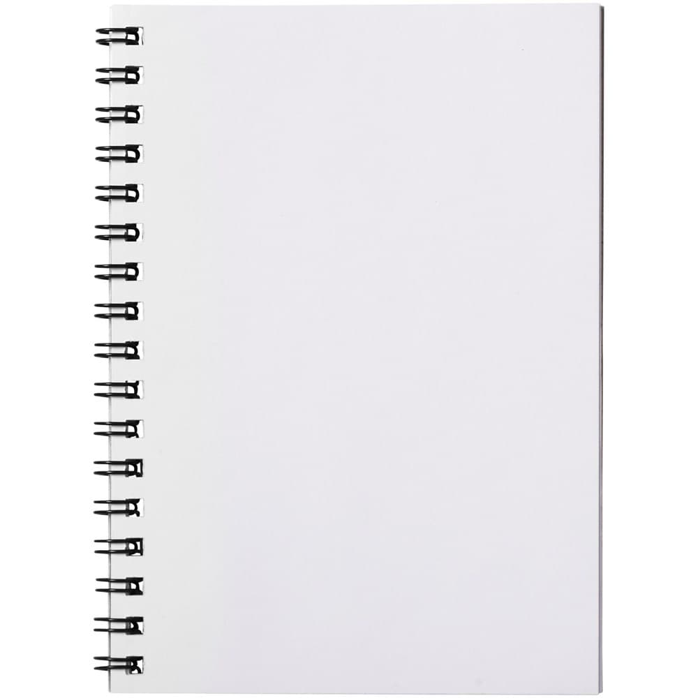 Desk-Mate® spiraal A6 notitieboek. Bevat 50 blanco vellen van 80 g/m2 papier, een glanzende kartonnen voorkant (250 g/m2) en een transparante polypropyleen omslag van 450 micron. Zwarte of witte draad. Je kunt de pagina's van dit veelzijdige notitieboek aanpassen met elk gewenst ontwerp - dus of je nu gelinieerd papier, vierkanten of stippen wilt - alles is mogelijk!