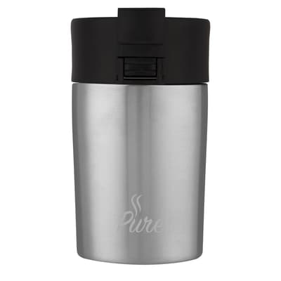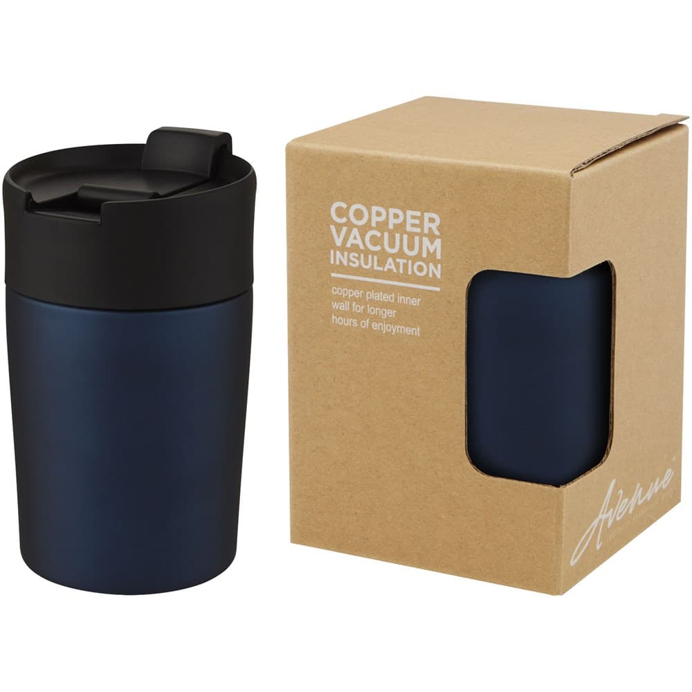 Dubbelwandige koperen vacuüm geïsoleerde minibeker met door één hand te bedienen deksel voor gemakkelijk drinken tijdens het rijden of multitasken. Het geïsoleerde 18/8 roestvrijstaal houdt dranken meerdere uren warm of koud. BPA-vrij, getest en goedgekeurd volgens de Duitse voedselveiligheidswetgeving (LFGB). Getest en goedgekeurd voor ftalaten volgens de REACH-regelgeving. De beker past in de meeste koffiezetapparaten en autobekerhouders. Inhoud 180 ml Handwas aanbevolen. Geleverd in een gerecycled kartonnen geschenkverpakking.