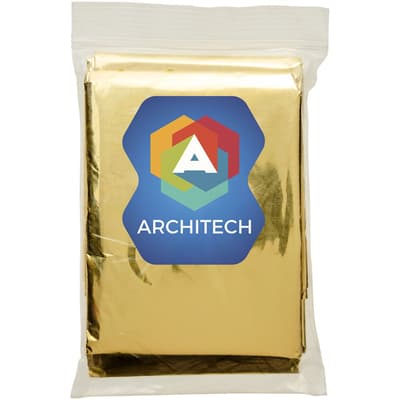 Nooddeken dat bescherming kan bieden tegen hitte, kou en vochtigheid. Het is perfect voor kampeeruitstapjes, sportevenementen en noodsituaties. Wanneer de zilveren kant tegen het lichaam ligt, biedt het bescherming tegen de kou. De gouden kant tegen het lichaam houdt je koel. Het deken is 160x210 cm. Hij is gereguleerd, getest en gecertificeerd als een Medisch Hulpmiddel Klasse I in overeenstemming met de Richtlijn Medische Hulpmiddelen MDD 93/42/EEG van 14 juni 1993.