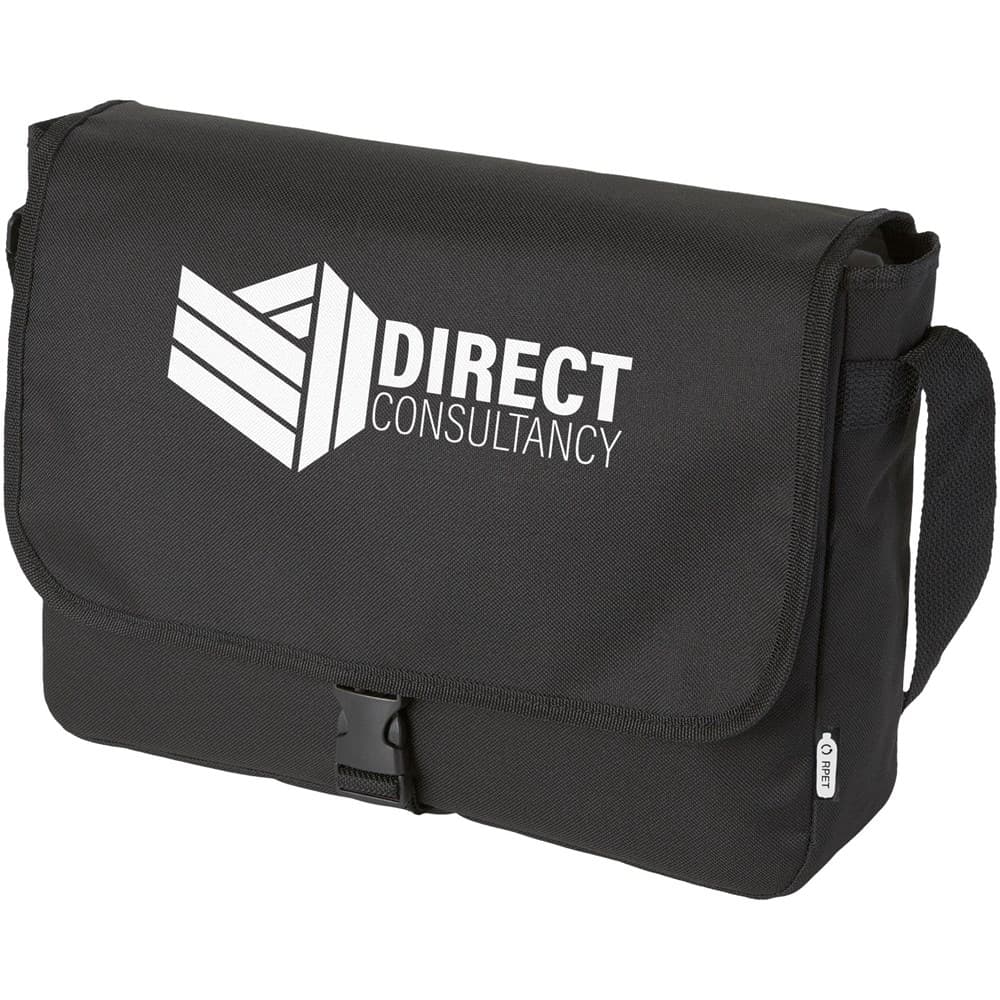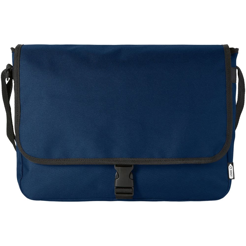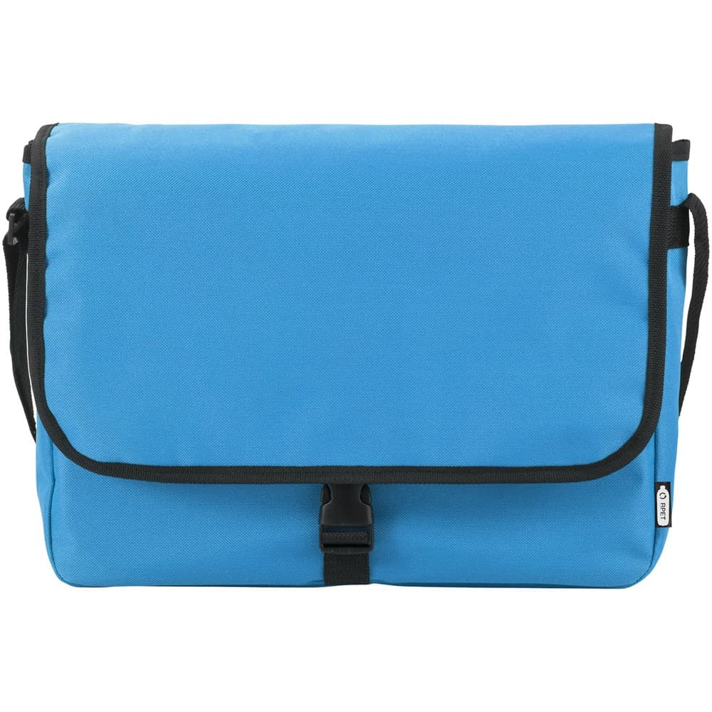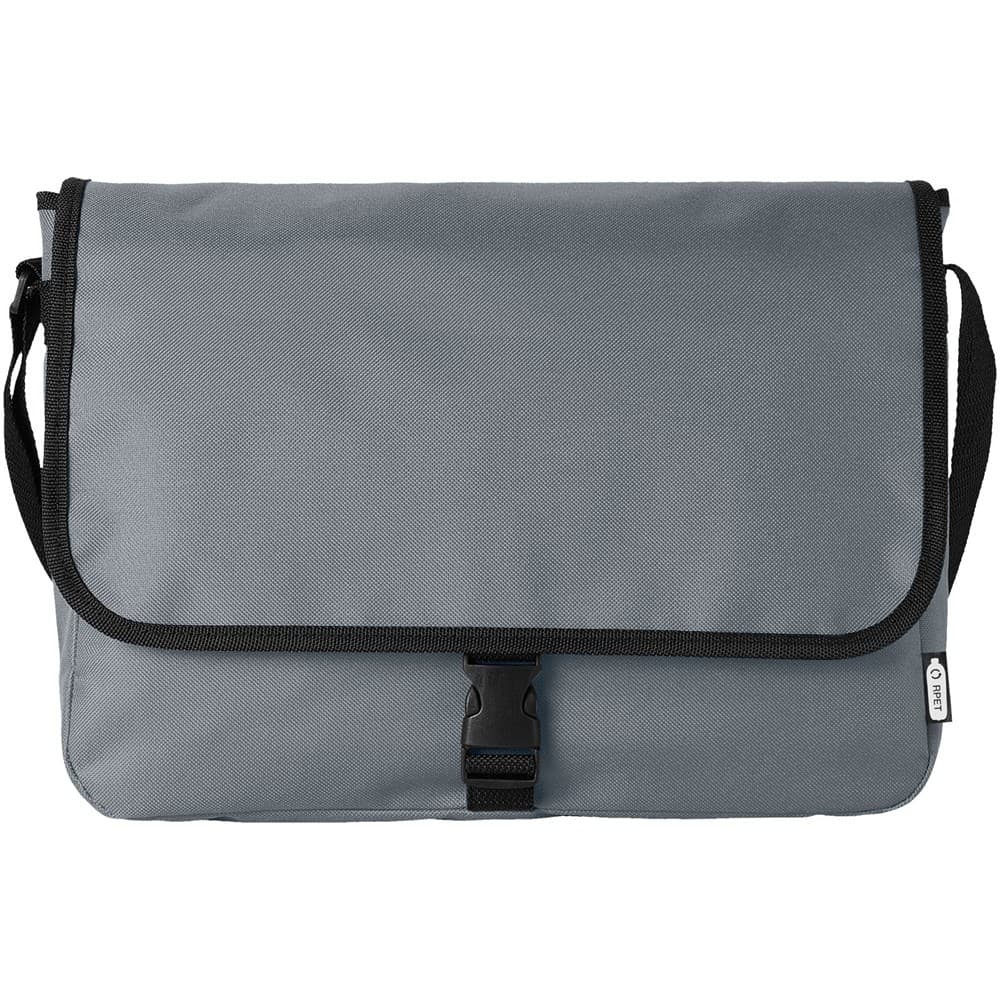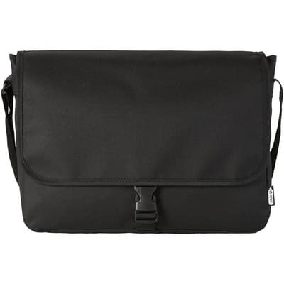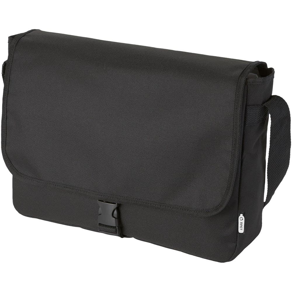 Schoudertas van gerecycled PET plastic met een verstelbare schouderriem. Voorzien van een hoofdcompartiment dat sluit met een klep en een gespsluiting.