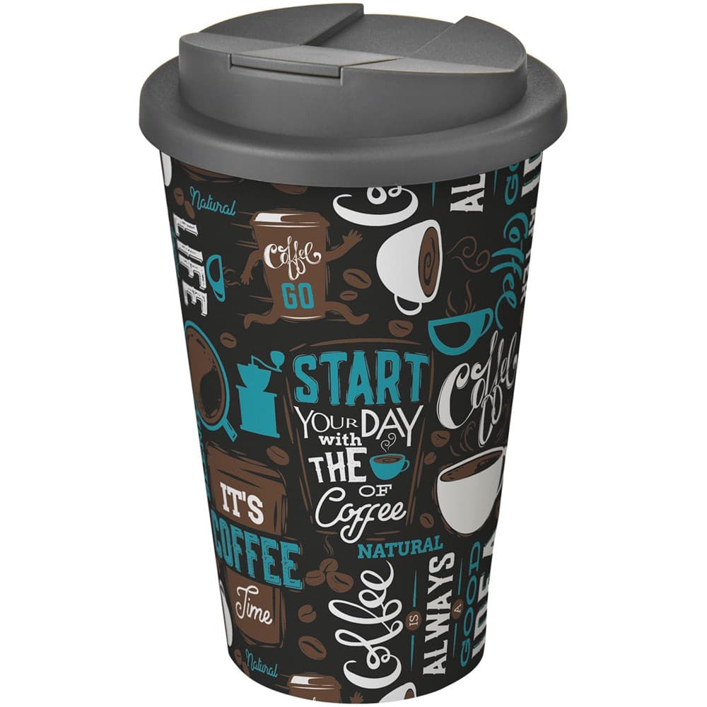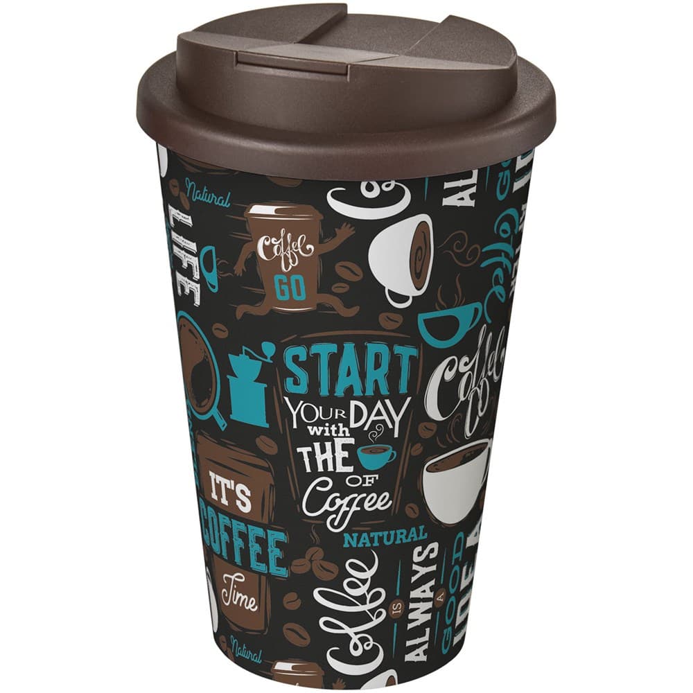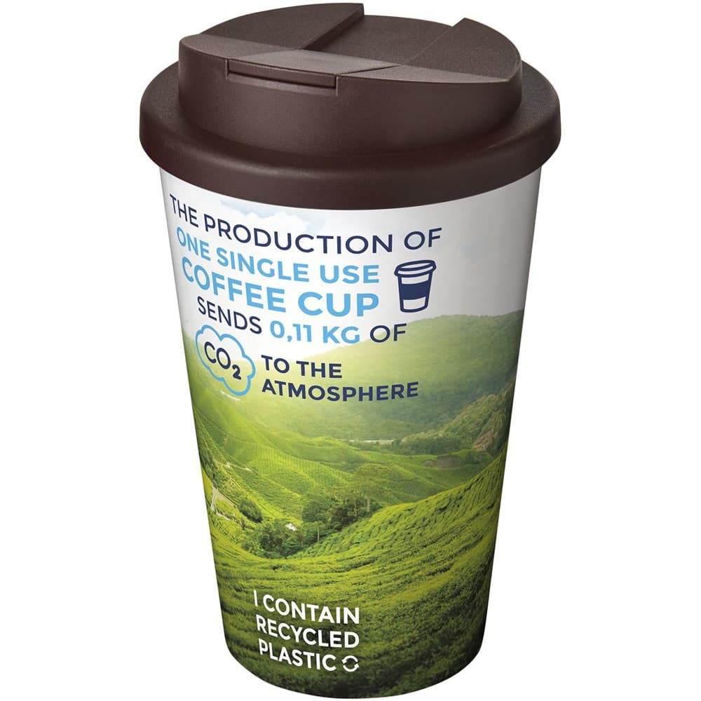 Dubbelwandige geïsoleerde beker met draaideksel en is vervaardigd zonder siliconen voor een volledige recyclebare beker. De buitenste laag van de beker is gemaakt van gerecycled plastic. De beker heeft een full colour all-over bedrukking welke tijdens het spuitgiet proces één wordt met de beker en hierdoor lang meegaat en duurzaam is. De volumecapaciteit is 350 ml. EN12875-1, vaatwasmachinebestendig en magnetronbestendig. Mix en match kleuren om je perfecte beker te creëren. Gemaakt in het Verenigd Koninkrijk. BPA-vrij.