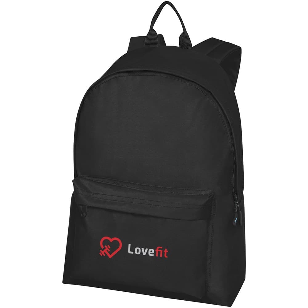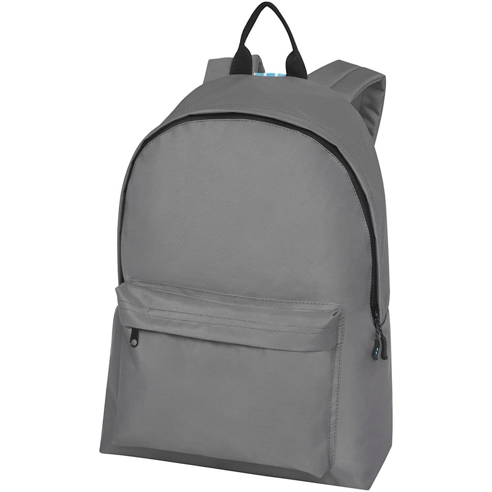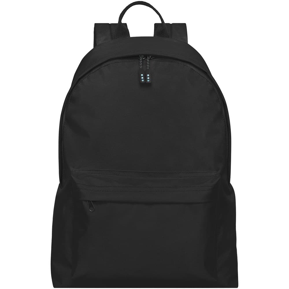 Duurzame GRS-gecertificeerde RPET rugzak gemaakt met 80% gerecyclede materialen. Voorzien van een groot hoofdvak met rits met een klein vak met rits aan de binnenkant en een vak met rits aan de voorkant. Wordt geleverd met comfortabele schouderbanden en een hengsel.