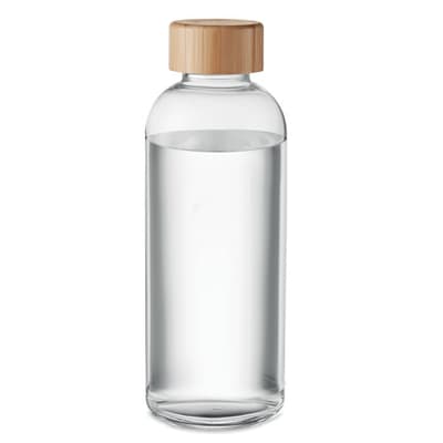 Glazen drinkfles met bamboe dop en een inhoud van 650ML. Lekvrij. Bamboe is een natuurlijk product, de kleur per artikel kan verschillen.