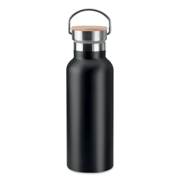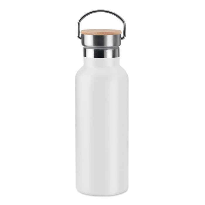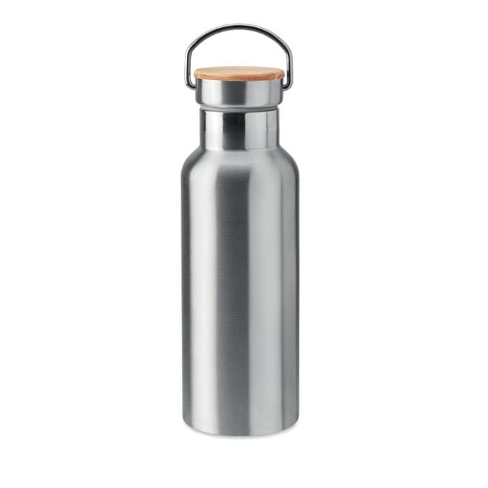 Dubbelwandige roestvrijstalen fles met een stijlvolle dop met bamboeafwerking. Inhoud: 500 ml. Sublimatiebedrukking is alleen geschikt op het witte item. De fles is 100% lekvrij. Aangezien bamboe een natuurlijk product is, kan de kleur per artikel variëren. Ideaal voor thermoflessen bedrukken!