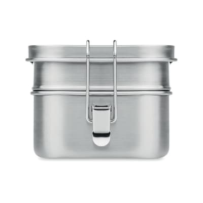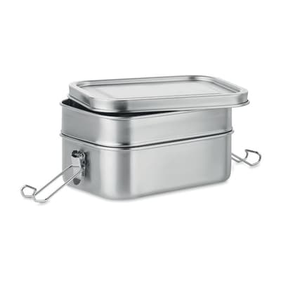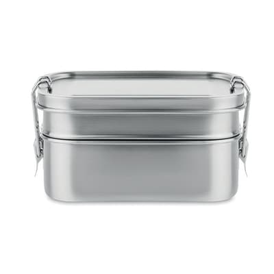 RVS lunchbox met 2 compartimenten en buckle sluiting aan de zijkanten. Inhoud 1200ml.