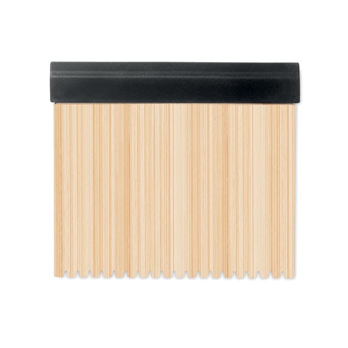 Bamboe ijskrabber met een gekartelde rand en wisser. Bamboe is een natuurlijk product, de kleur per artikel kan verschillen.