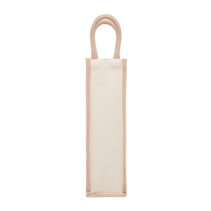 Wijngeschenktas van jute en 320 gr/m² canvas. Geschikt voor 1 flessen.