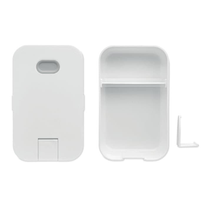 PP kunststof broodtrommel met geïntegreerde telefoonstandaard.