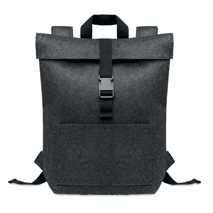 Rugzak van RPET vilt met katoenen sluitband, ritsvak aan de voorkant en een laptopcompartiment.